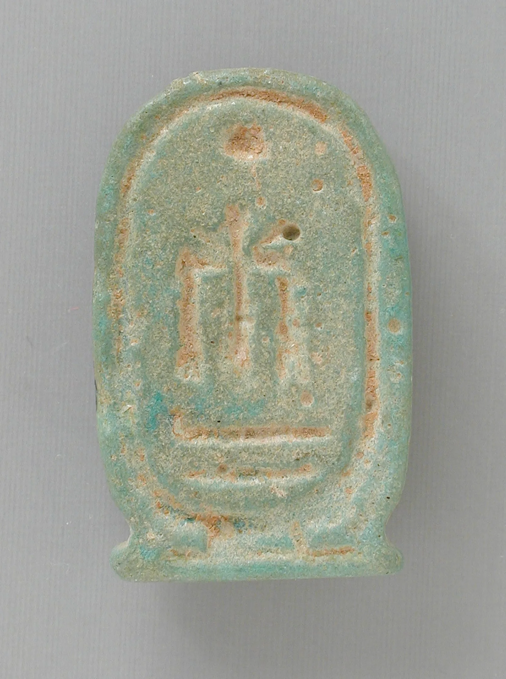 Molded faience cartouche shaped Plaque amulet