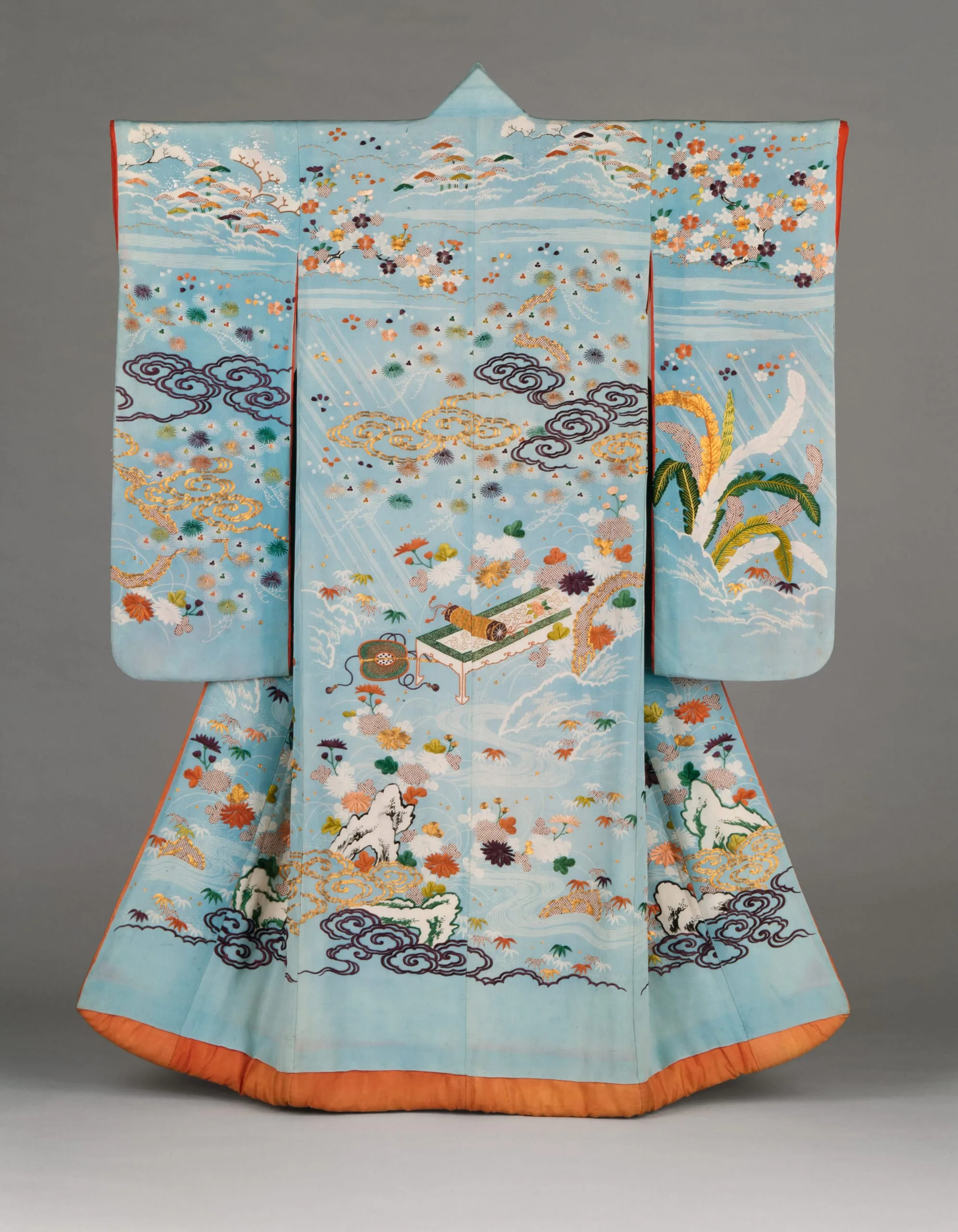 - Woman's Kimono (Furisode) with Imagery Alluding to the Noh Play Kikujido