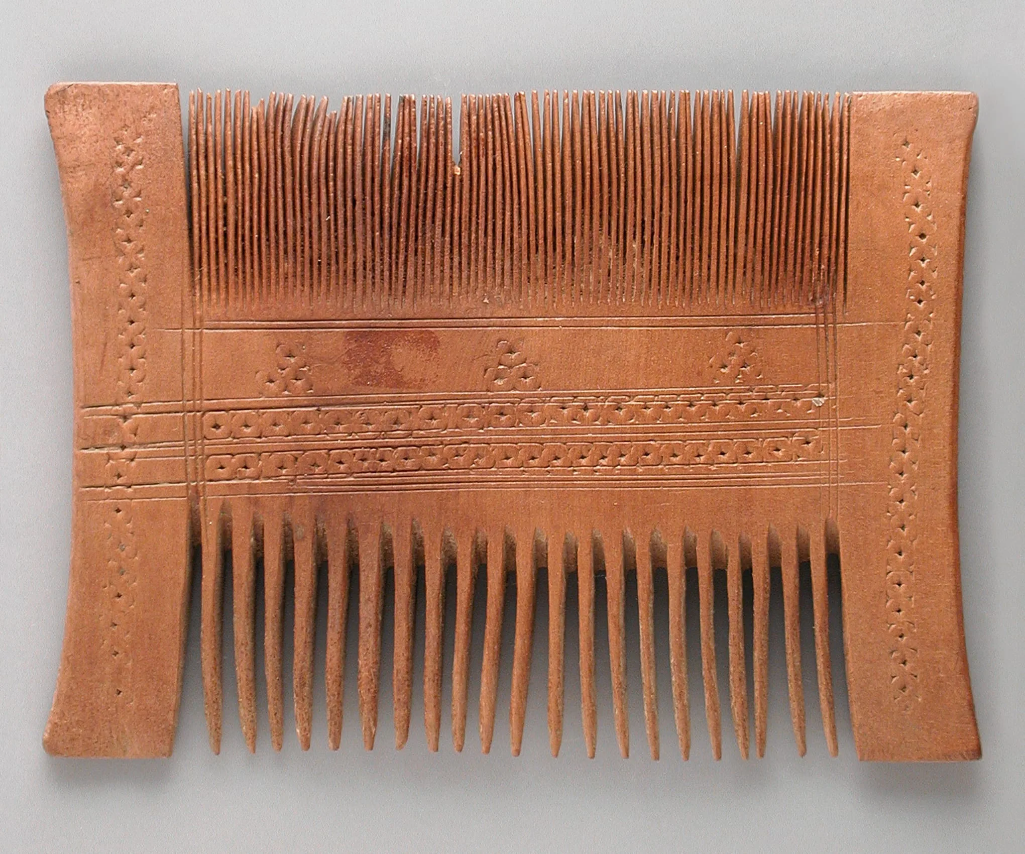 Wooden Comb with Geometric Carvings