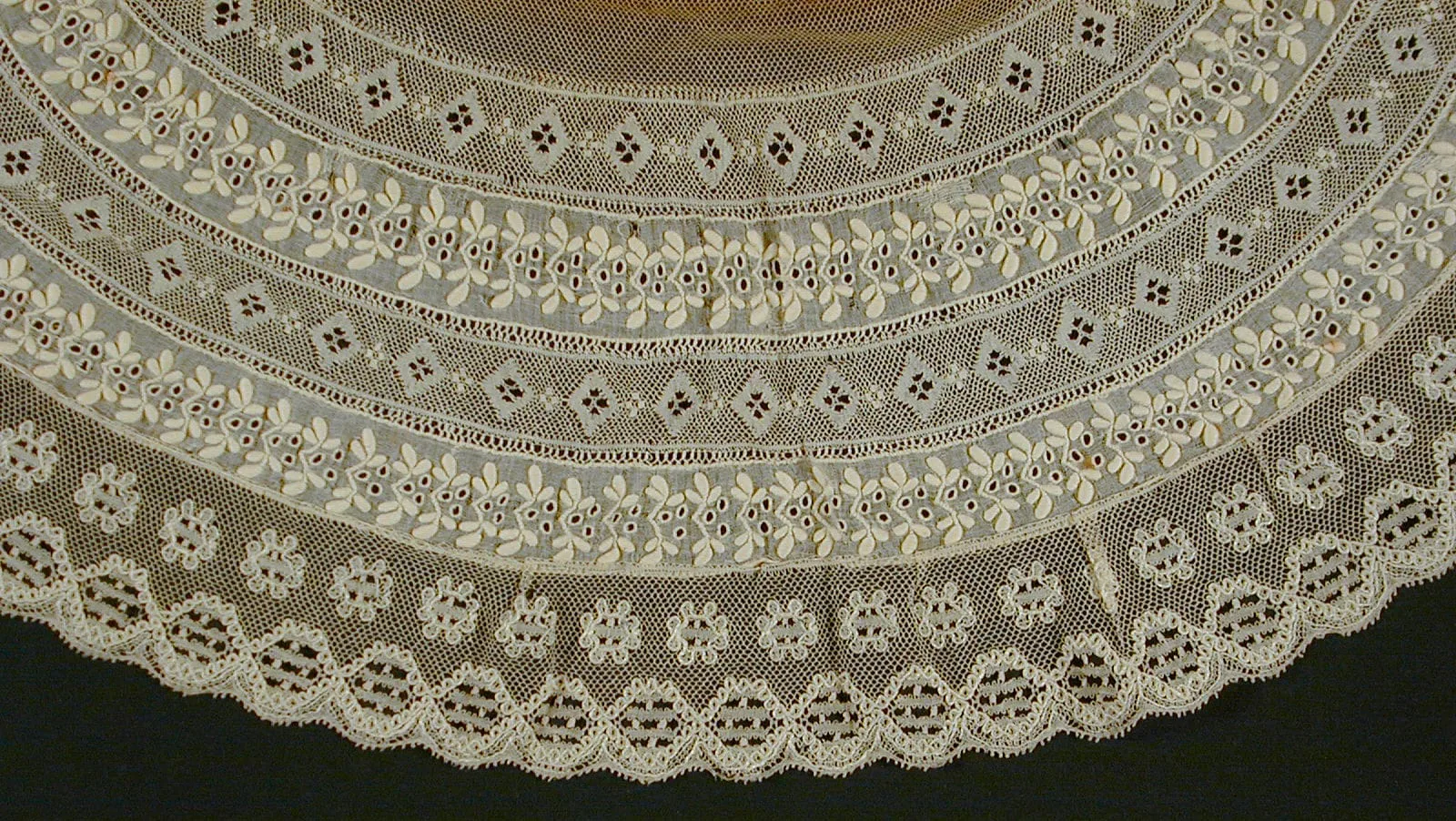 Cotton plain weave, cotton bobbin Lille-type lace, cotton embroidery