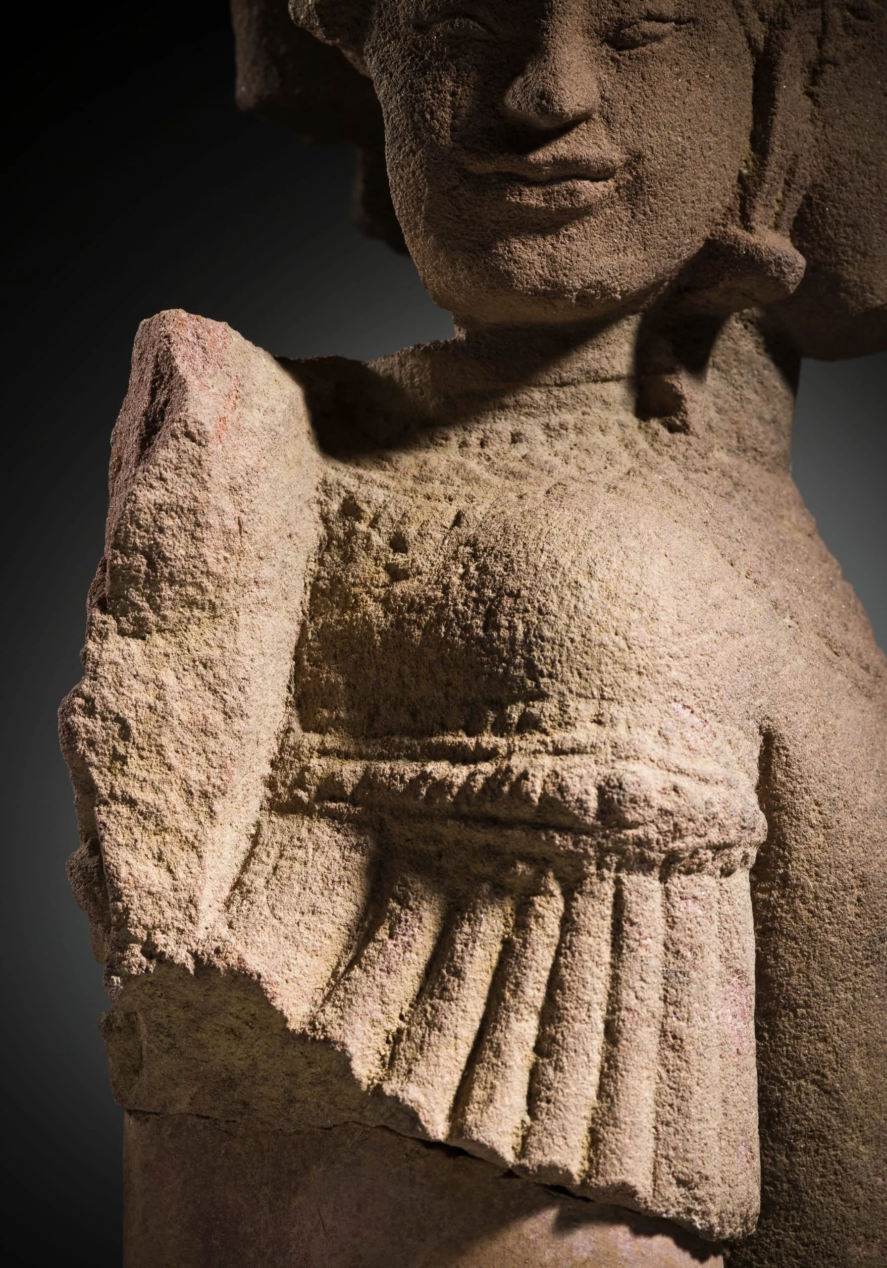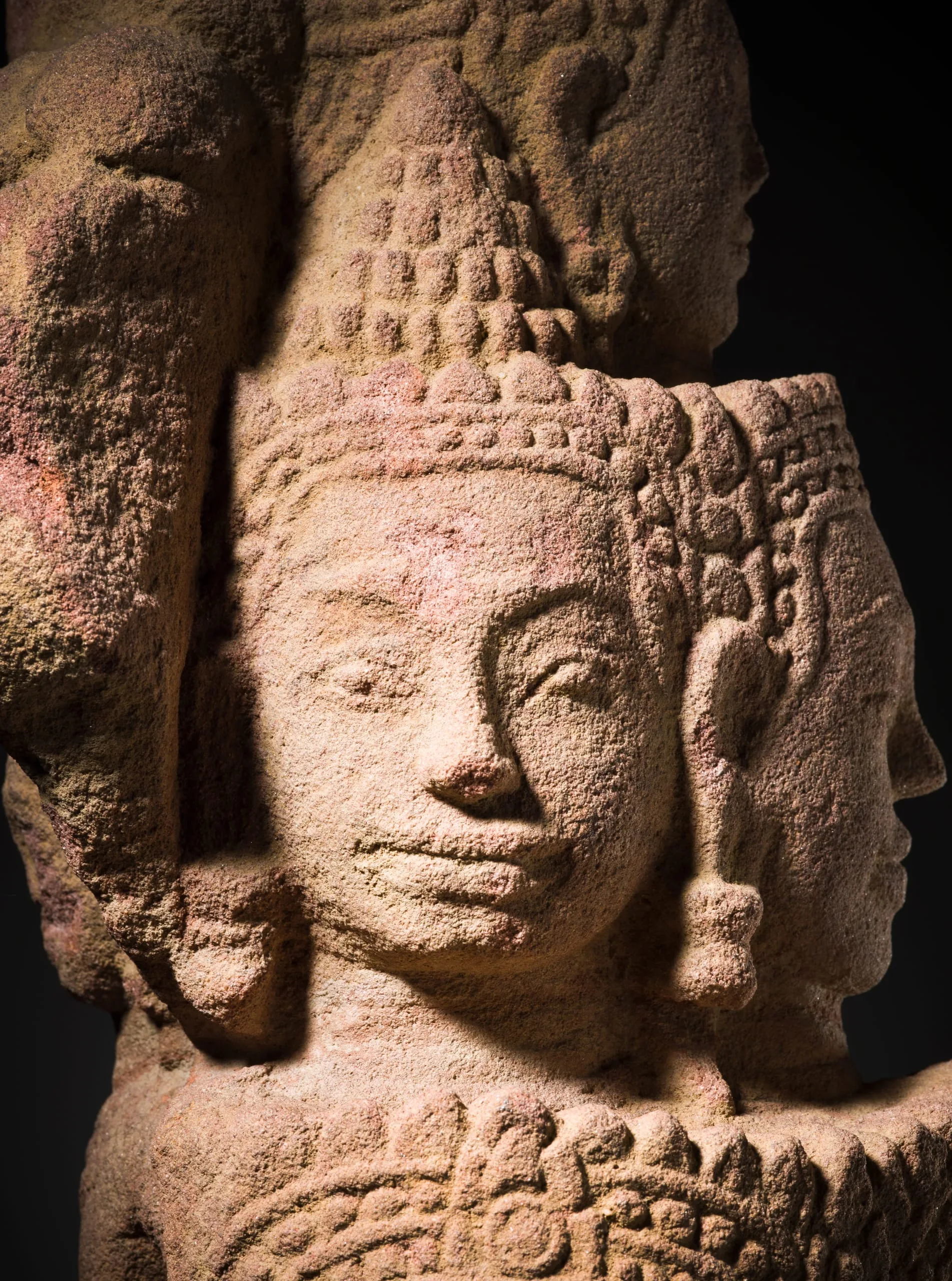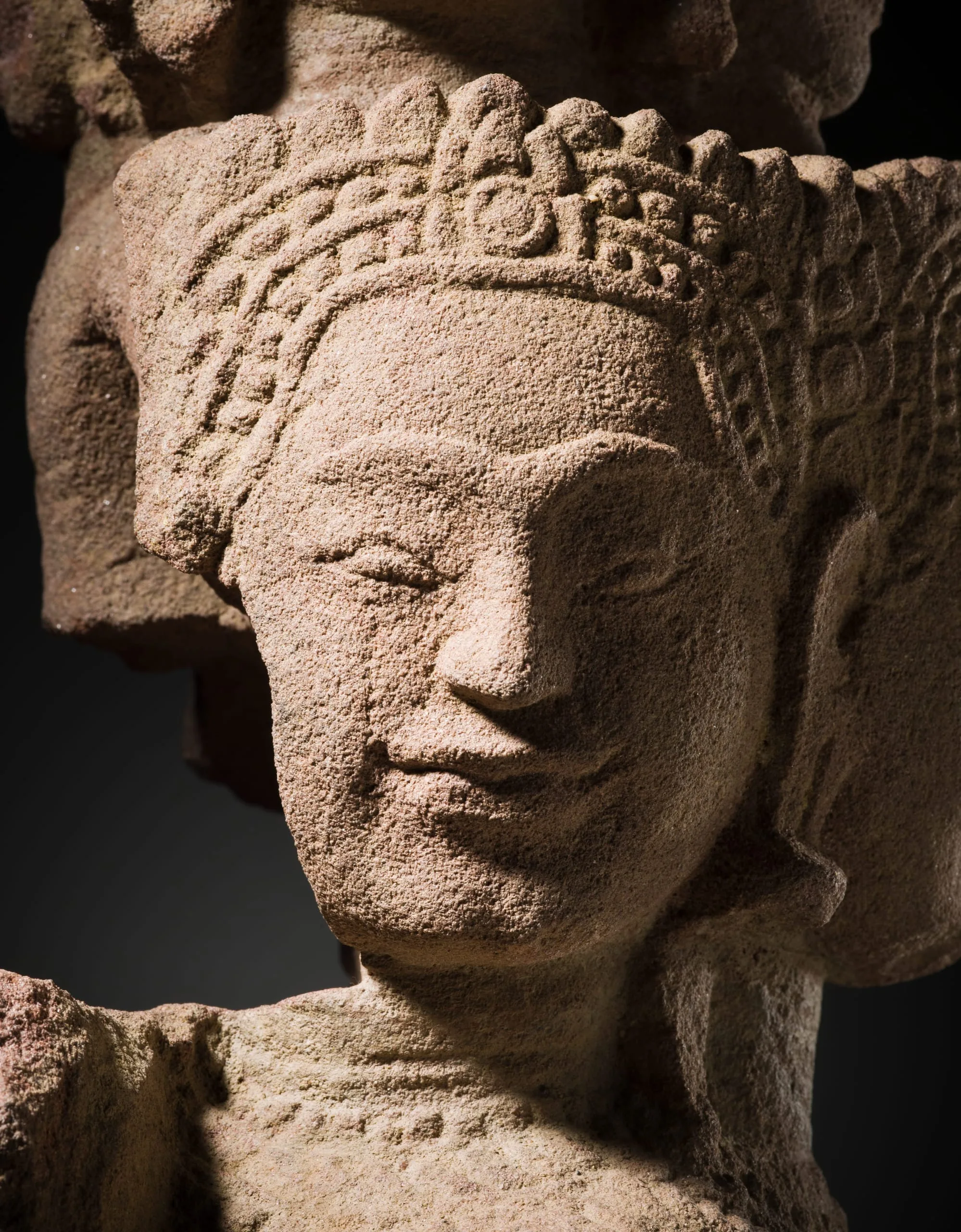 The deity Hevajra is associated with the esoteric form of Buddhism known as Tantric Buddhism, the practice of which is usually associated with eastern India, Nepal and Tibet. In the 12th-13th centuries, however, Tantric Buddhism was also practiced in Burma, Cambodia, Indonesia, and areas of northeastern Thailand, which at that time was under Khmer rule. This image is a superb example of the sophisticated Khmer Tantric Buddhist images produced in this period.