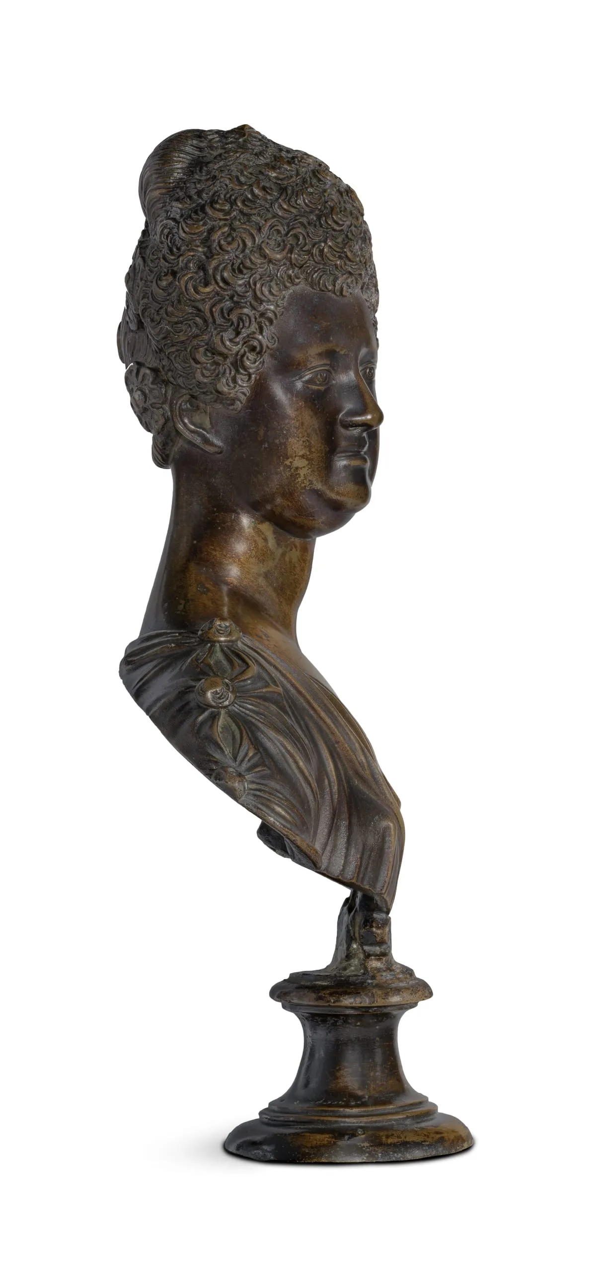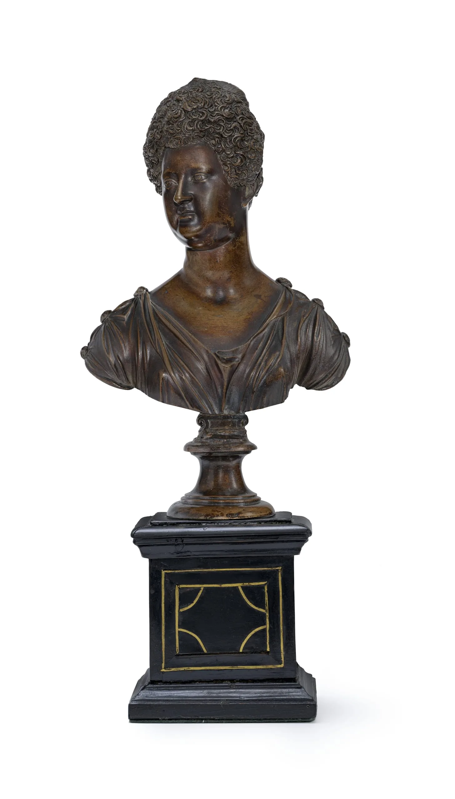 - Bronze on original brass-inlaid wood socle