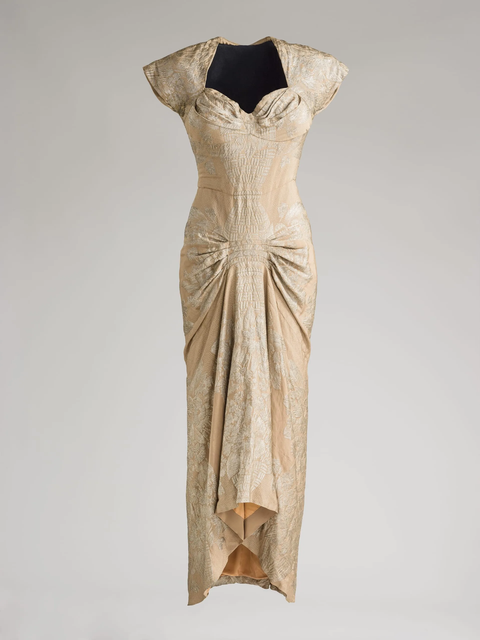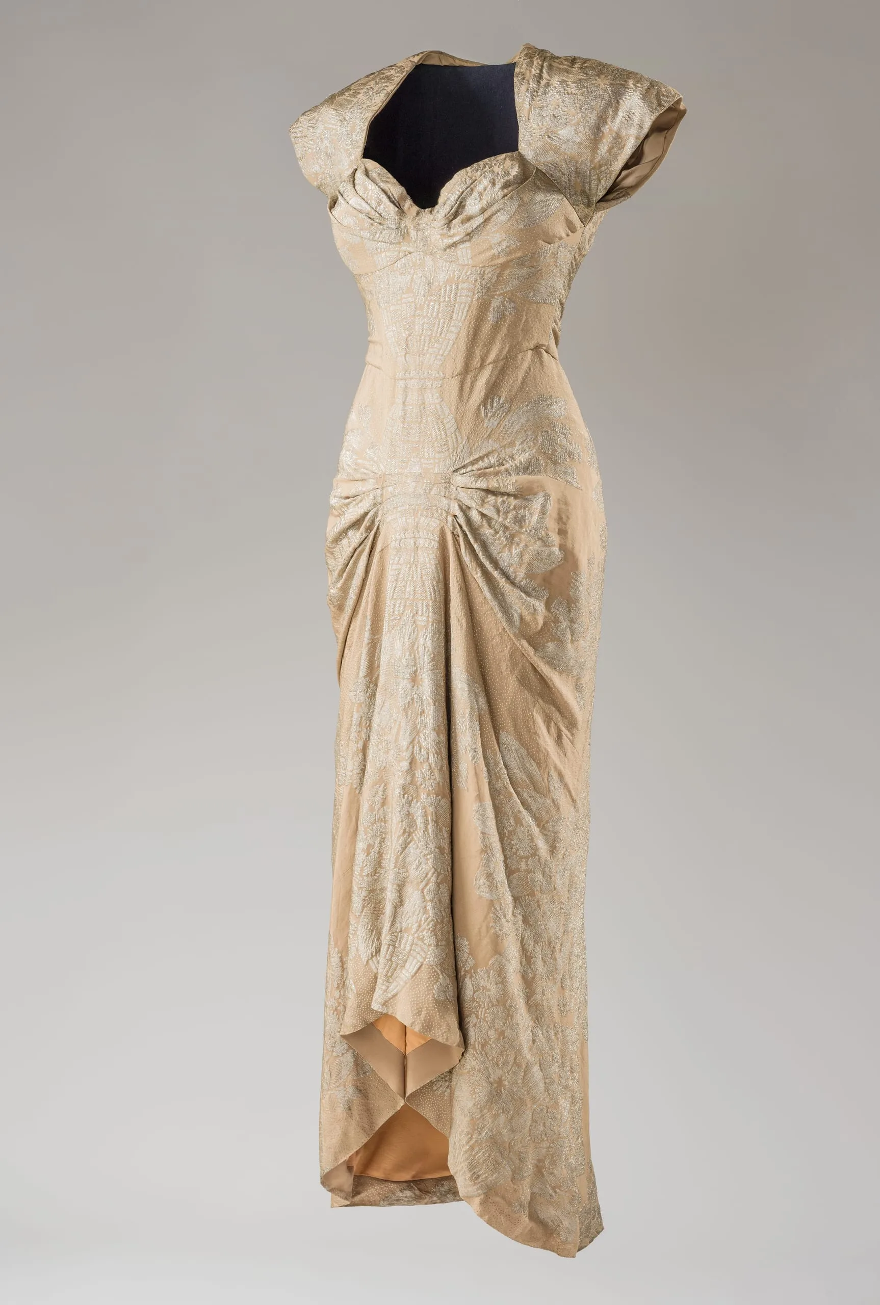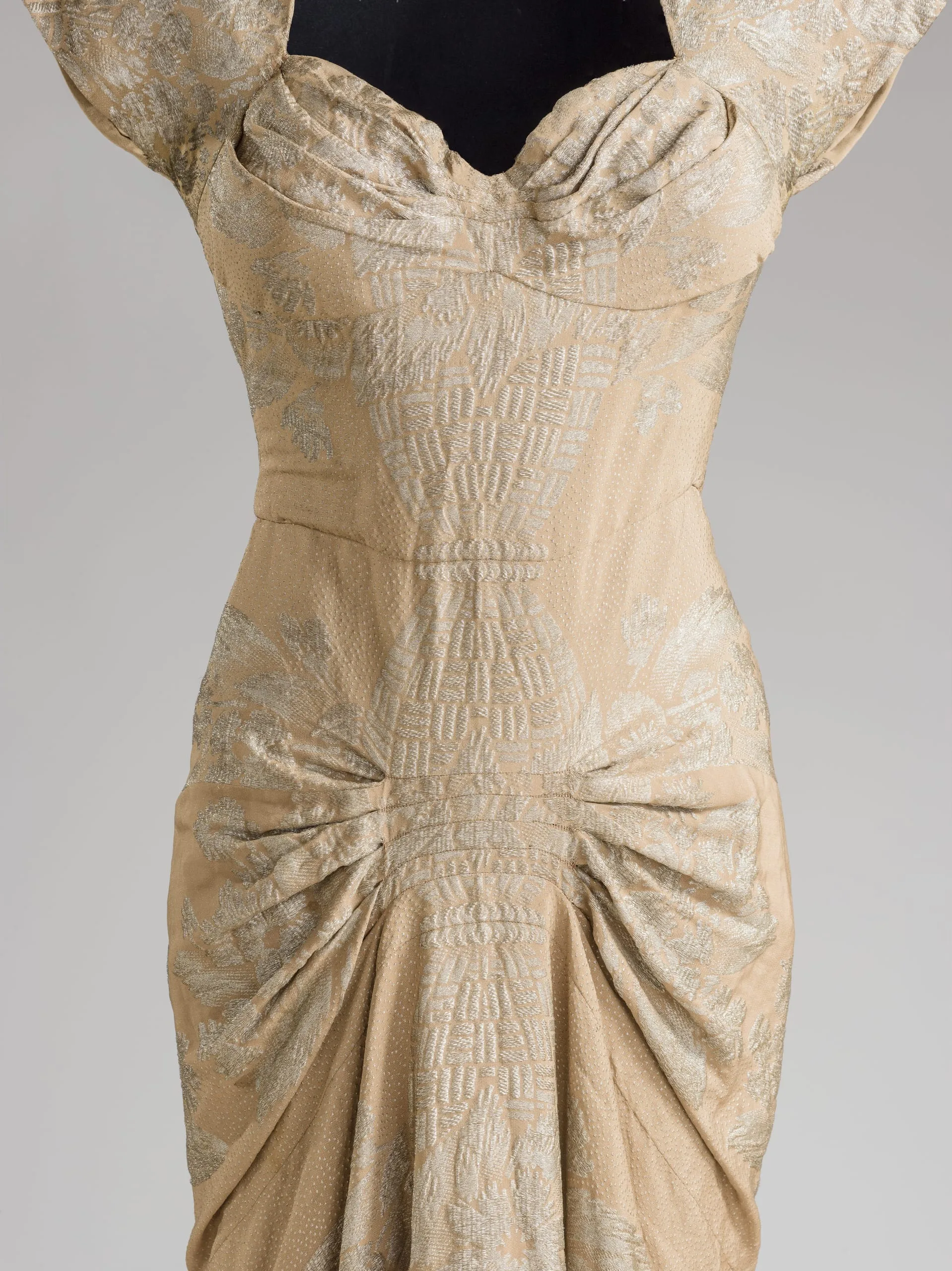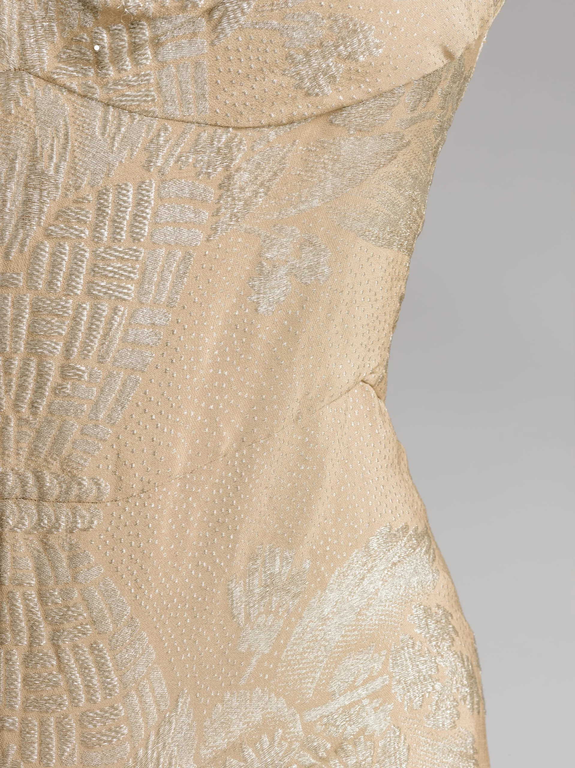 - Silk plain weave (crepe) with metallic-thread supplementary weft-float patterning