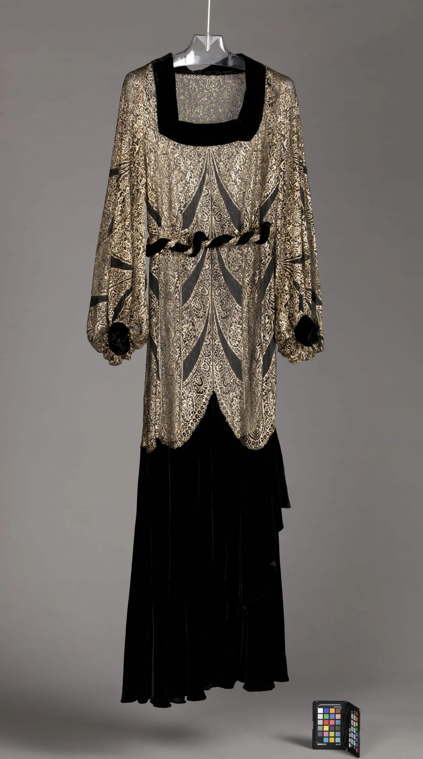 - metallic thread lace, silk velvet