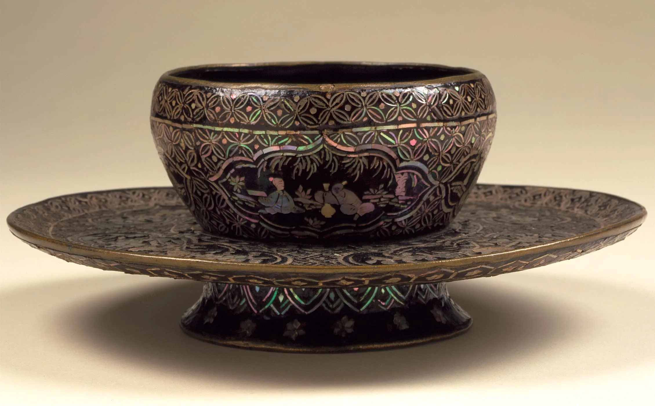 - Cup Stand (Tuozhan) with Cartouches Showing Figures in Landscapes, Birds, and Flowers