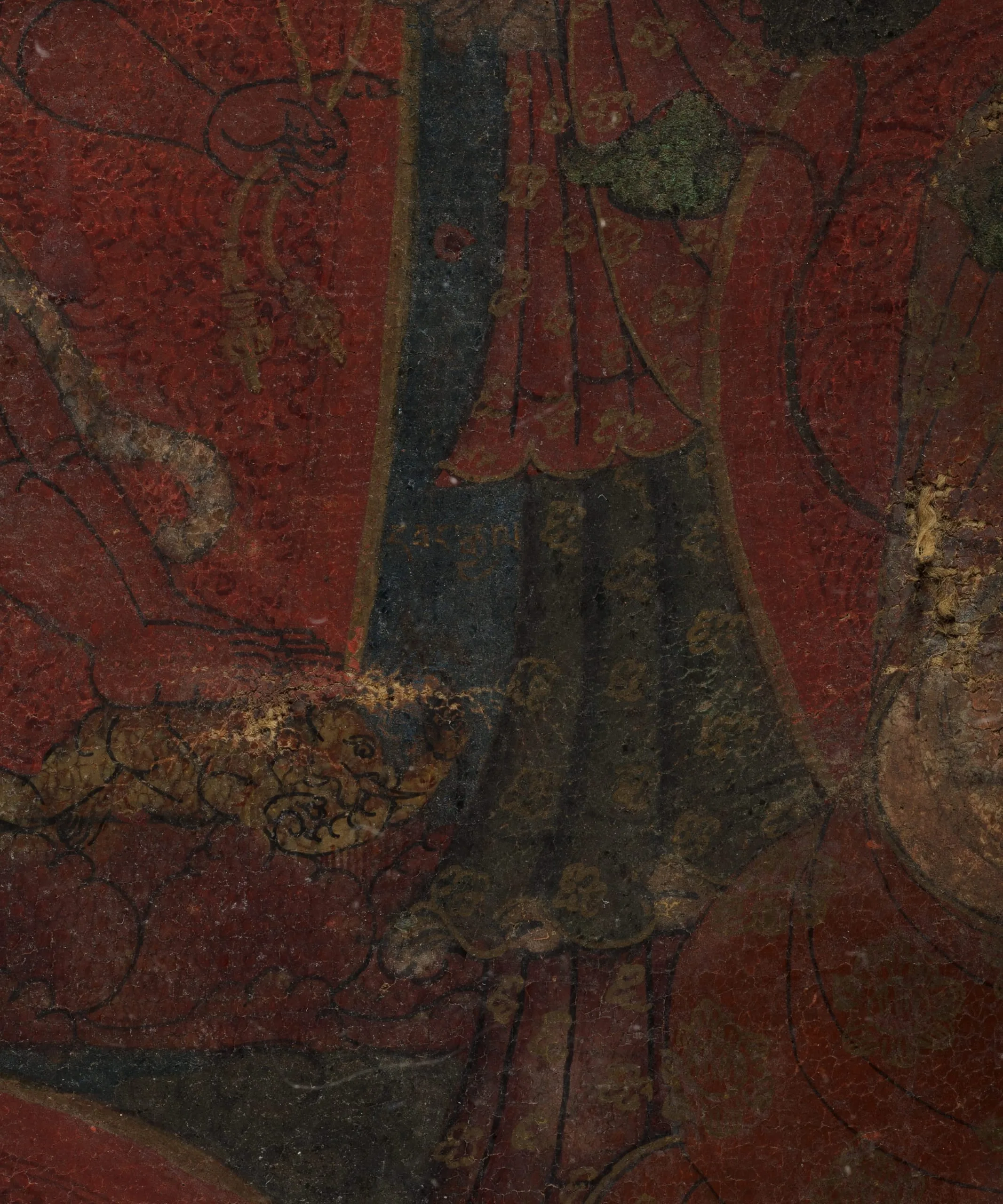 - Mineral pigments, gold, and ink on cotton cloth
