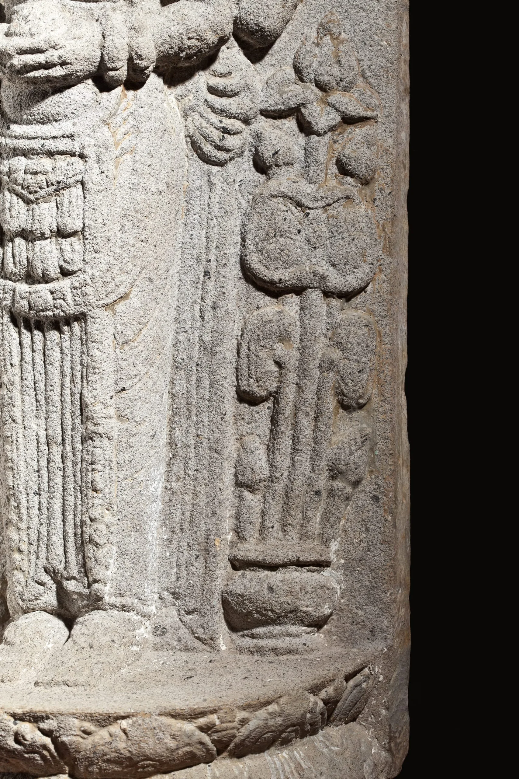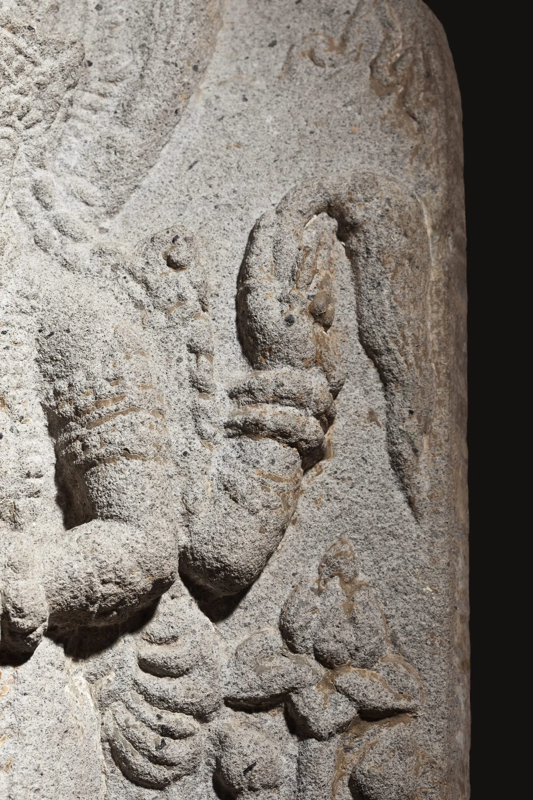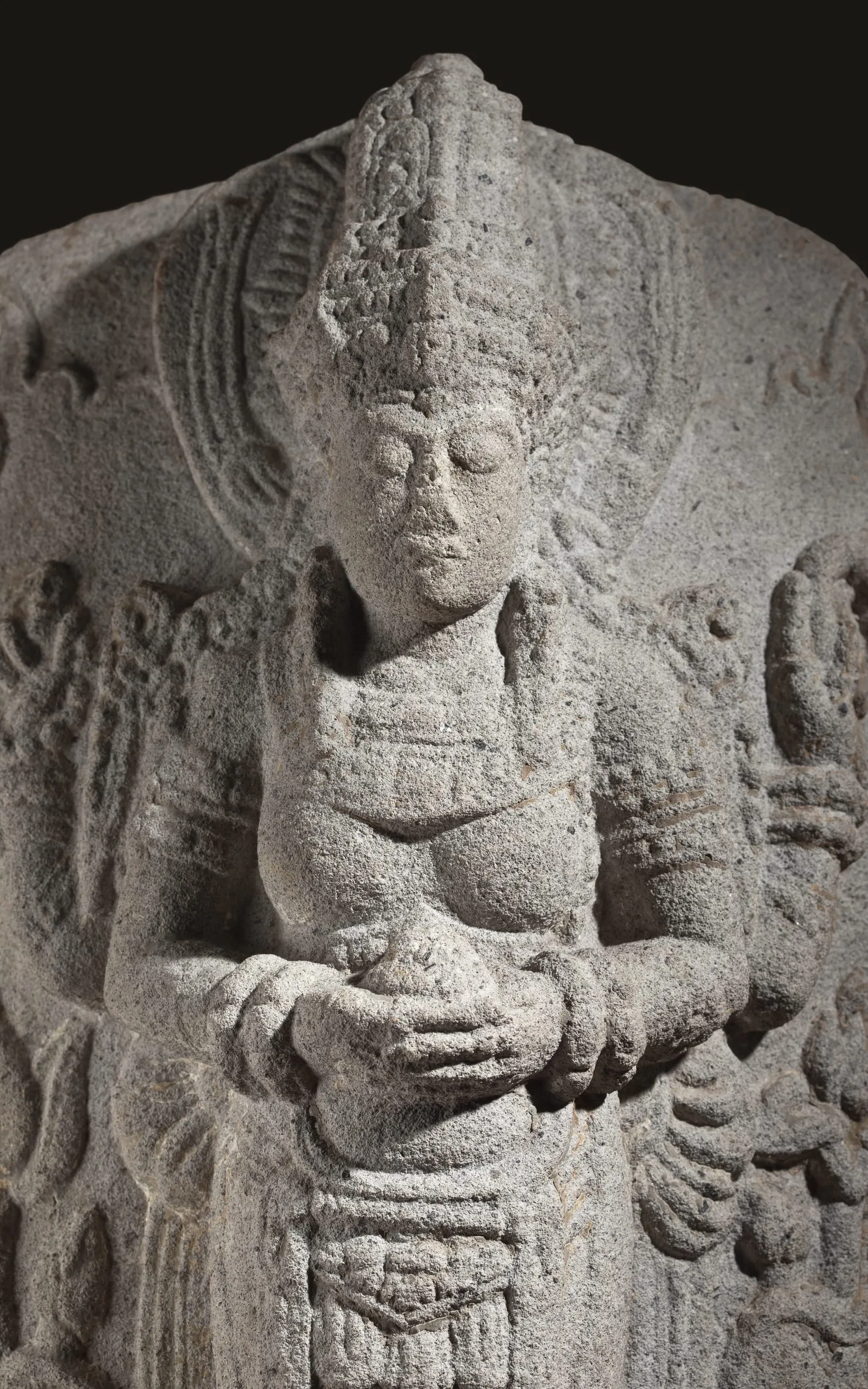 Ancestor worship in eastern Java during the Majapahit empire (1293–1527) blended Hindu-Buddhist beliefs and connected the royal ancestral lineage to the veneration of the gods as a basis for the traditional authority of the monarchy. Memorial sculptures such as this indicate the subject’s ultimate oneness with a Supreme Divinity. Used for both male and female deceased sovereigns, they were intended to represent the attainment of an abstracted absolute knowledge and deification.