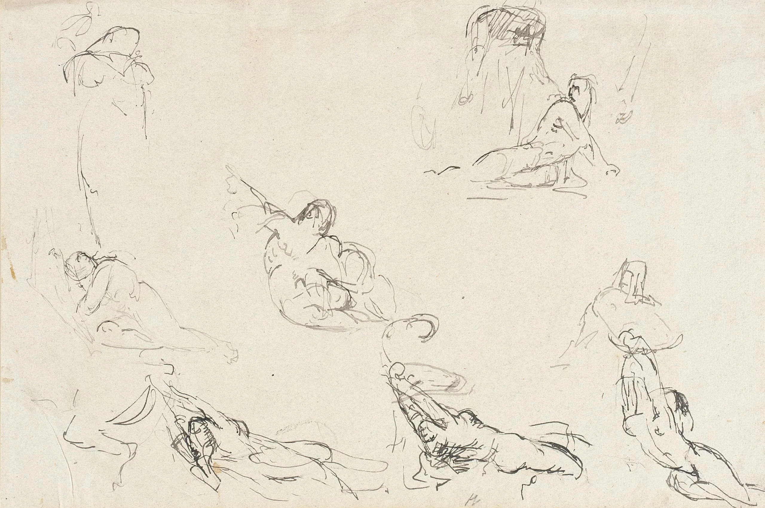 Sheet of Figure Studies (recto); Man Attacking a Woman (verso)