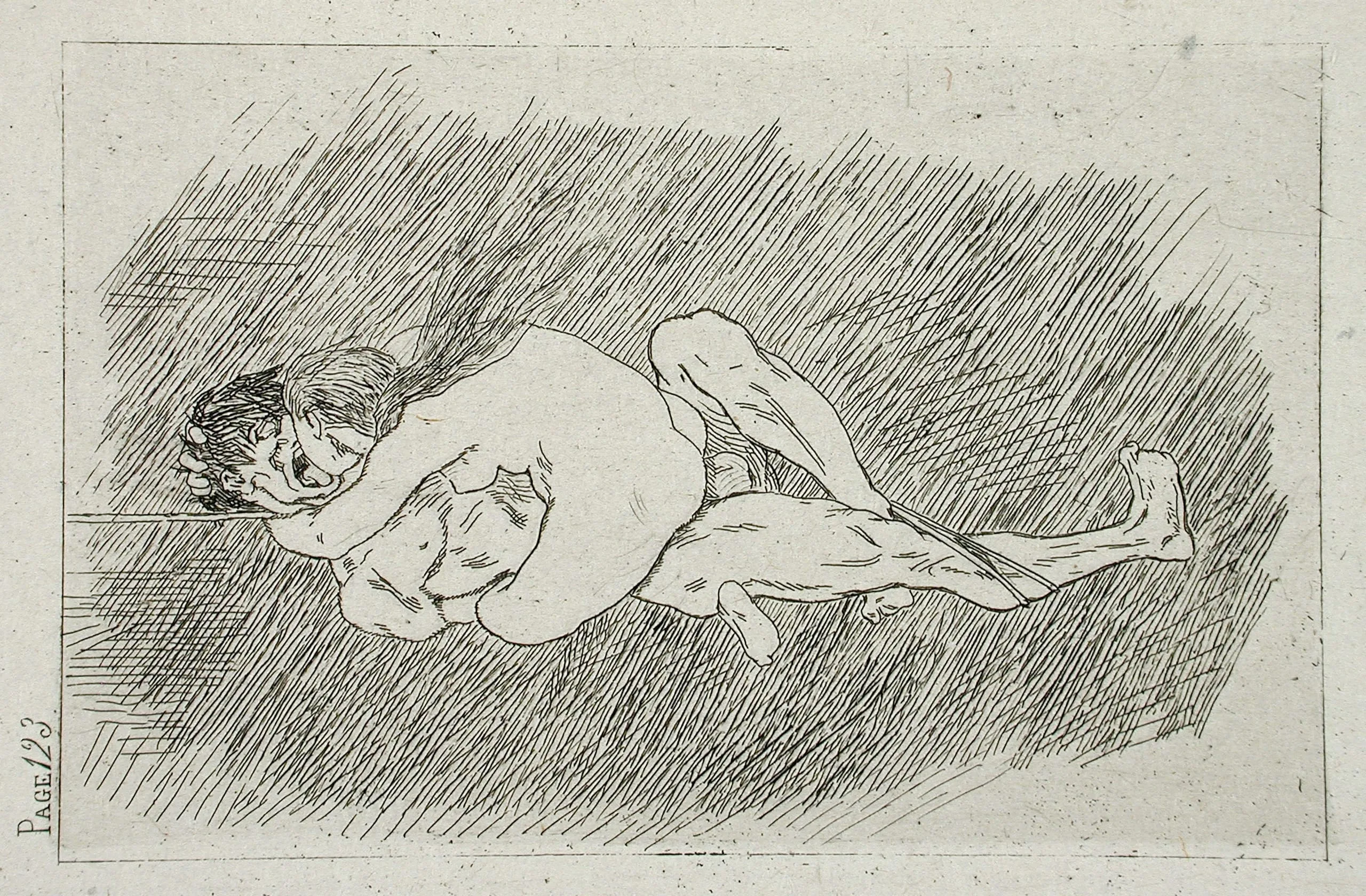 - Etching on mounted China (?) paper