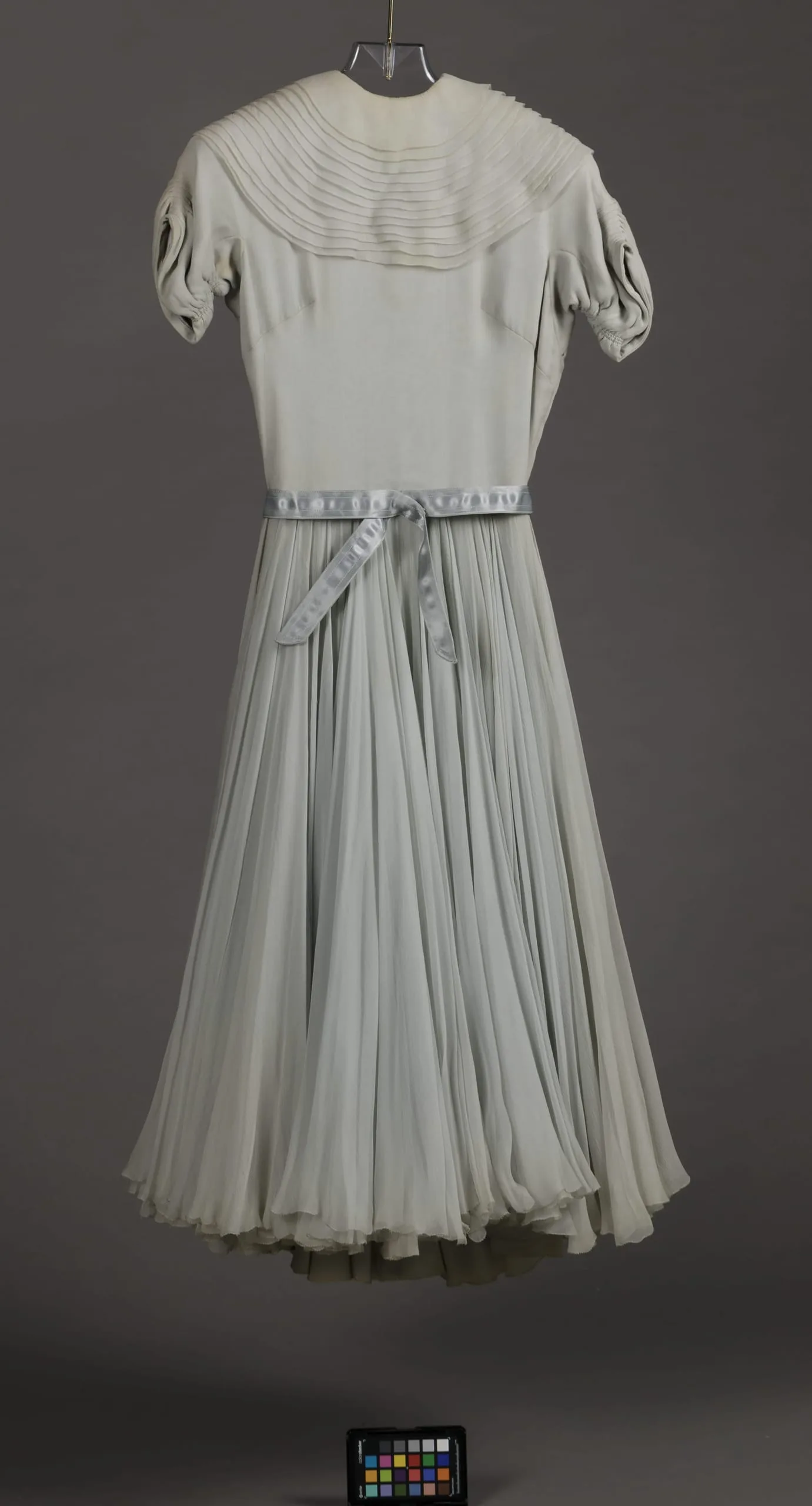 - Dress: silk plain weave (crepe chiffon) and rayon satin ribbon; Collar: silk plain weave (crepe chiffon)