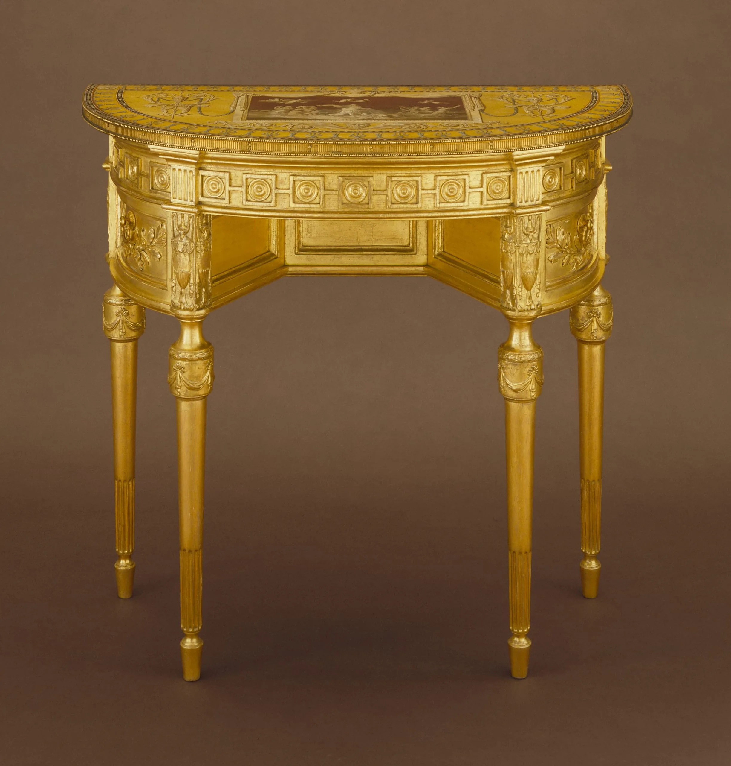 - Wood, gilt, paint, ormolu, brass, bronze mounts with gilding
