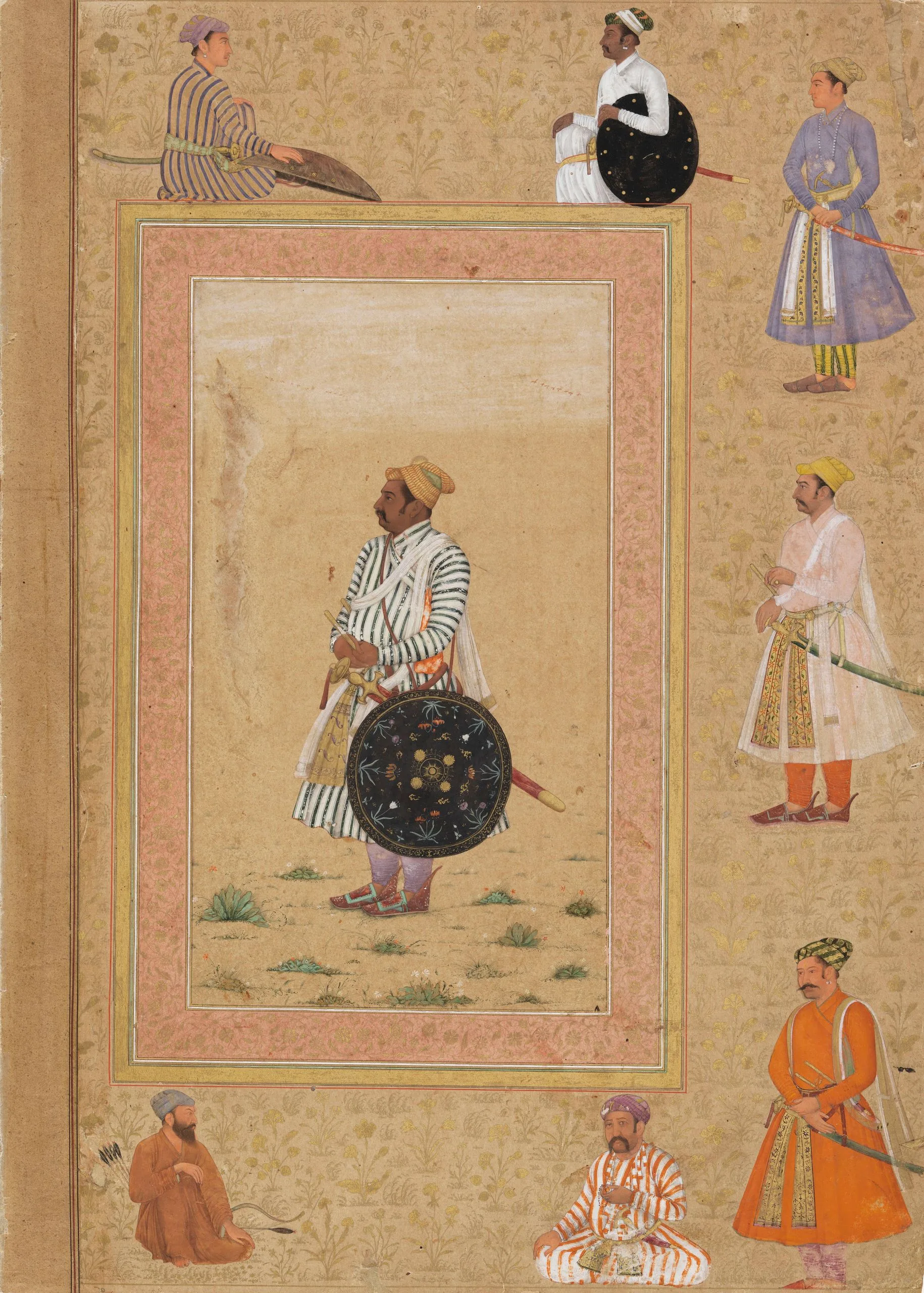 Verso: Rao Chattarsal (r. 1631-1658) ruled the Rajput state of Bundi in Rajasthan. He loyally served Emperor Shah Jahan (r. 1628-1658) and his eldest son Dara Shikoh (1615-1659) on the field of battle until his death in the Battle of Samugarh in 1658. He was also the governor of Delhi and Agra.