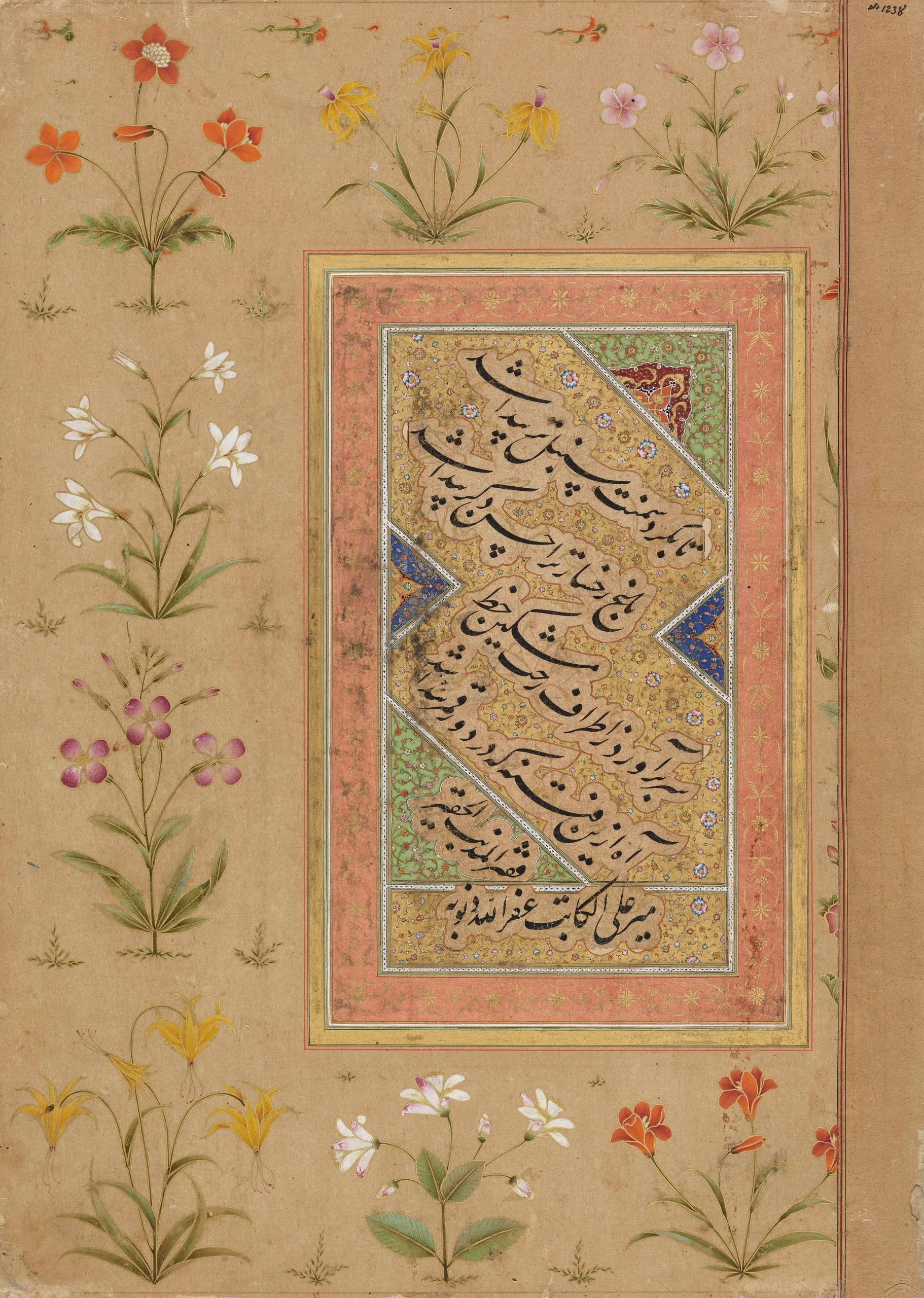 Recto: A page of nastaliq calligraphy by Mir Ali (Iran or Bukhara, circa 1505-1545):