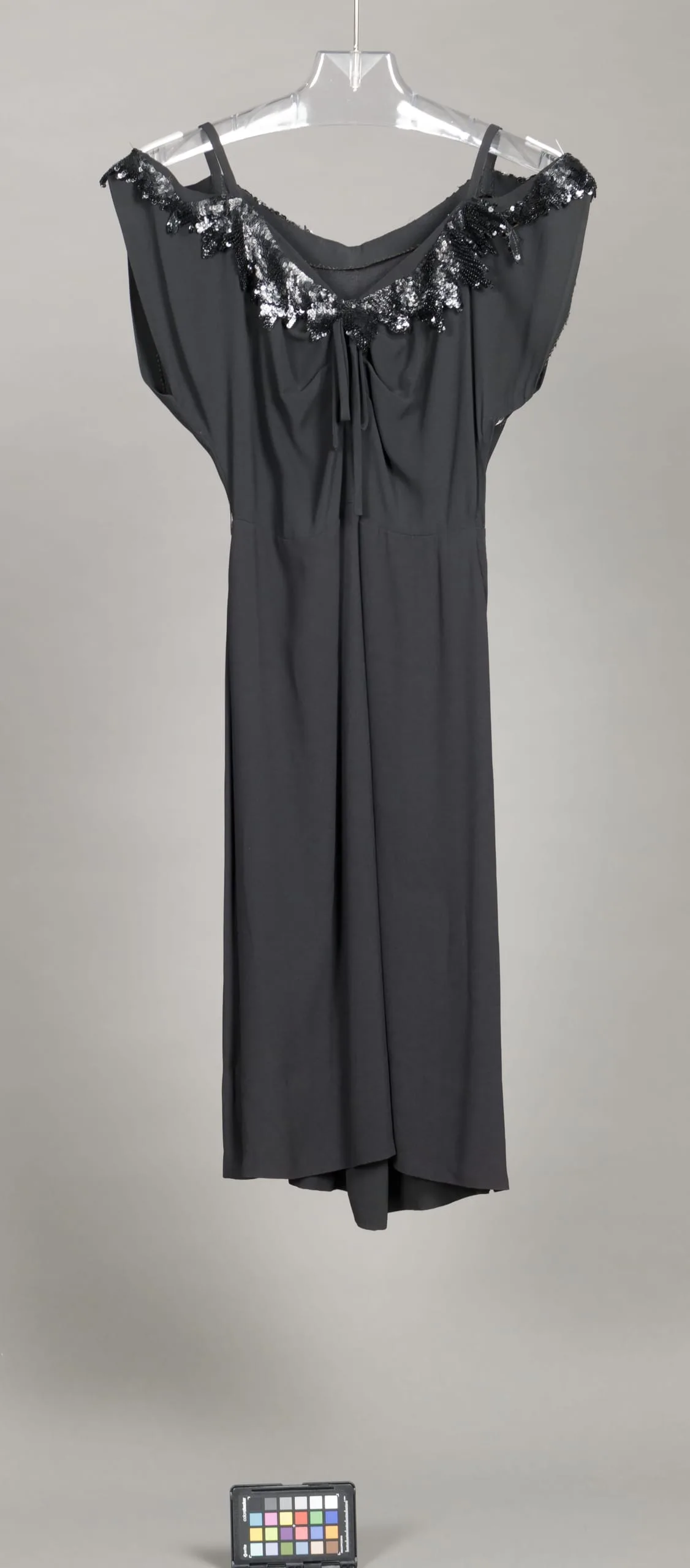 - Rayon plain weave (crepe) with plastic sequin appliqué