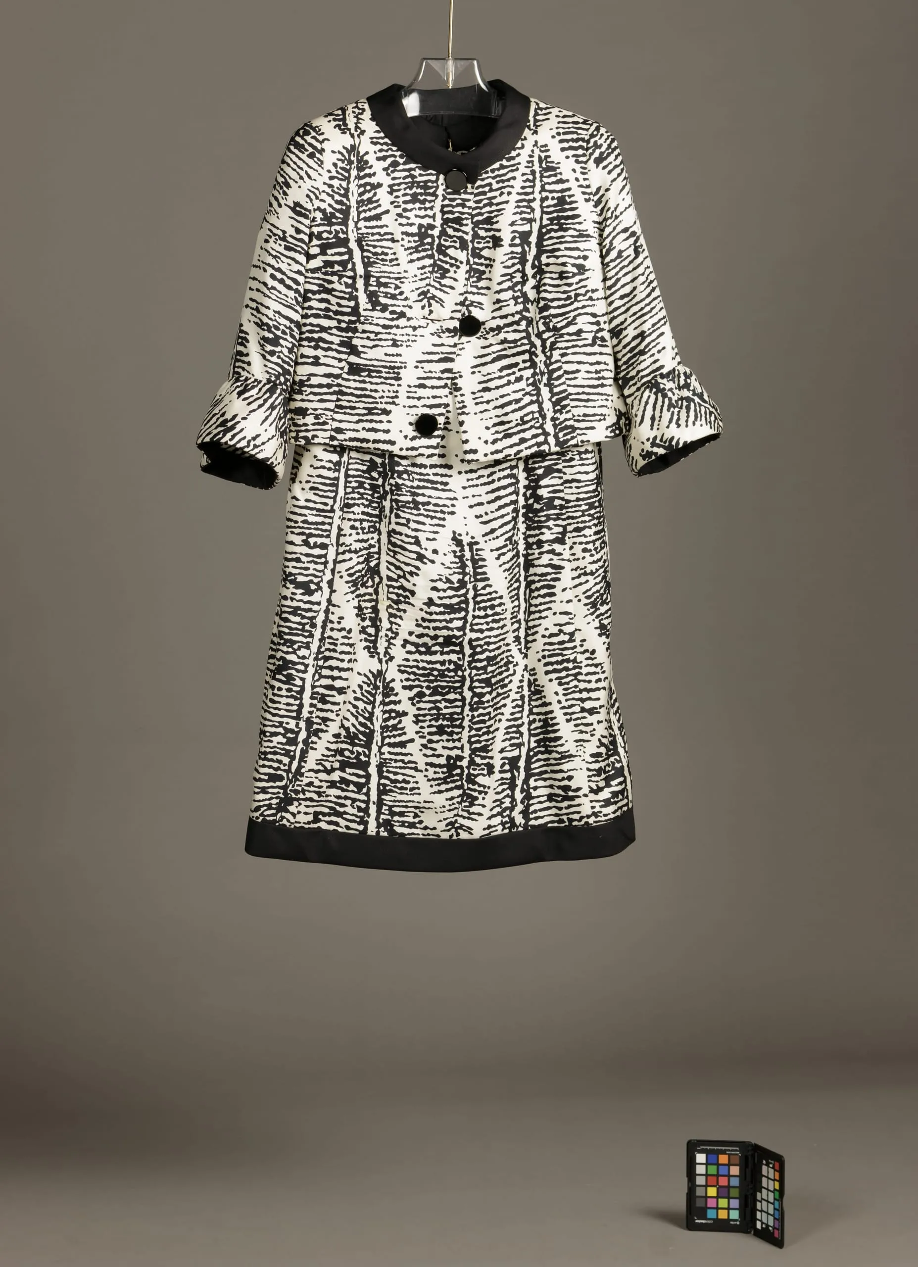 Jacket: Silk twill, printed, with silk plain weave, plastic buttons