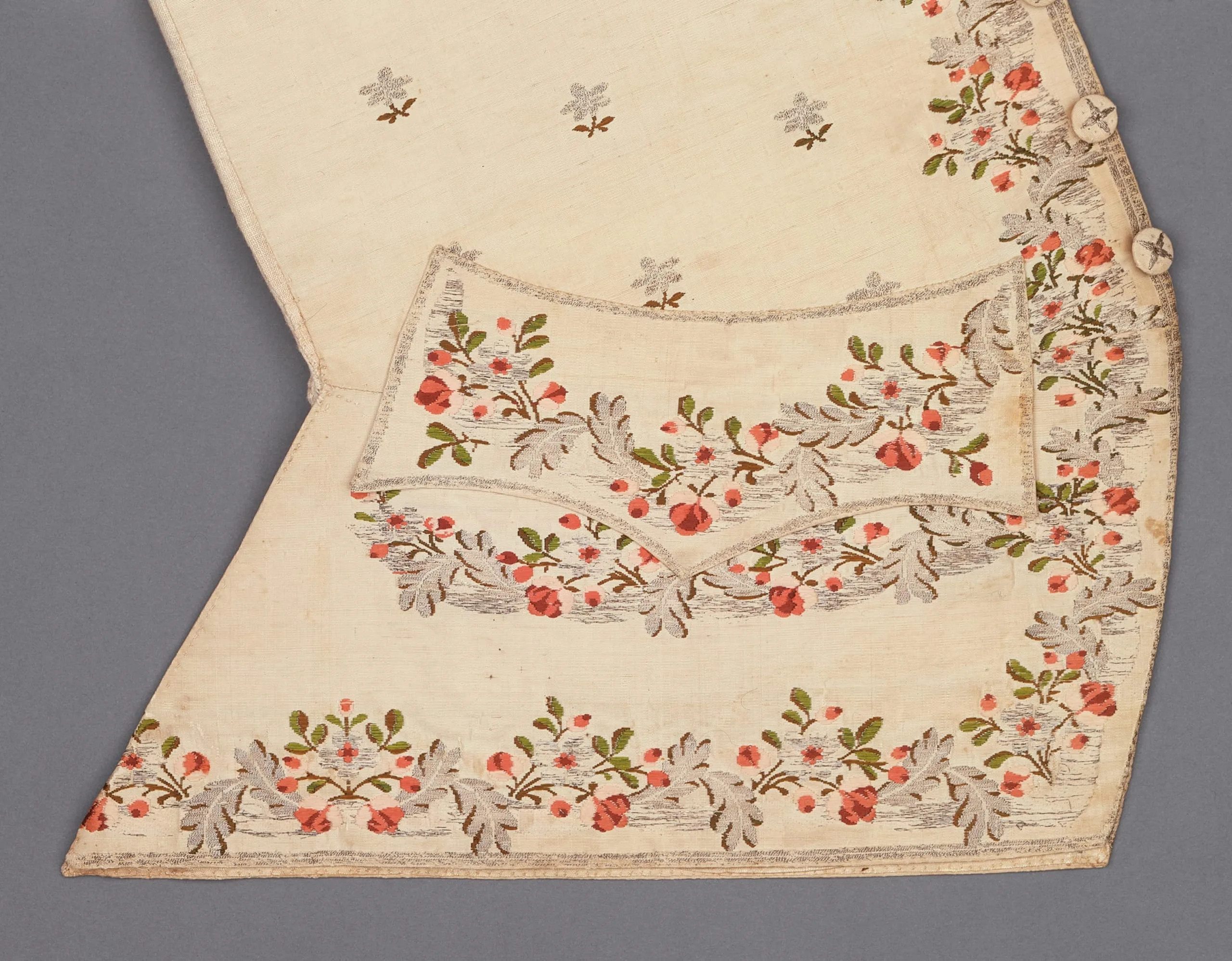 - Silk plain weave (faille) with silk and metallic-thread supplementary-weft patterning
