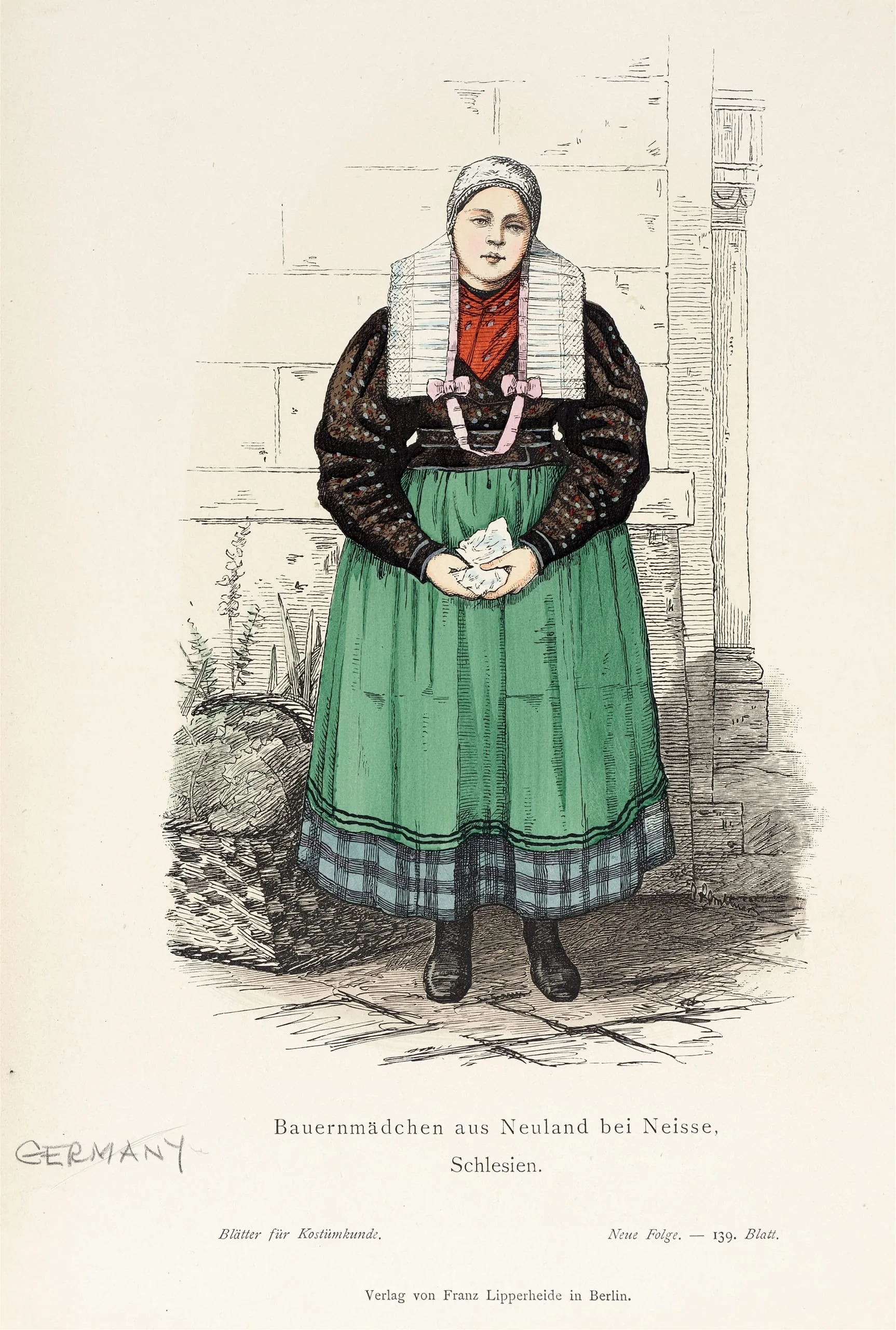 Costume Plate (Bauernmädchen aus Neuland bei Neisse, Schlesien)
