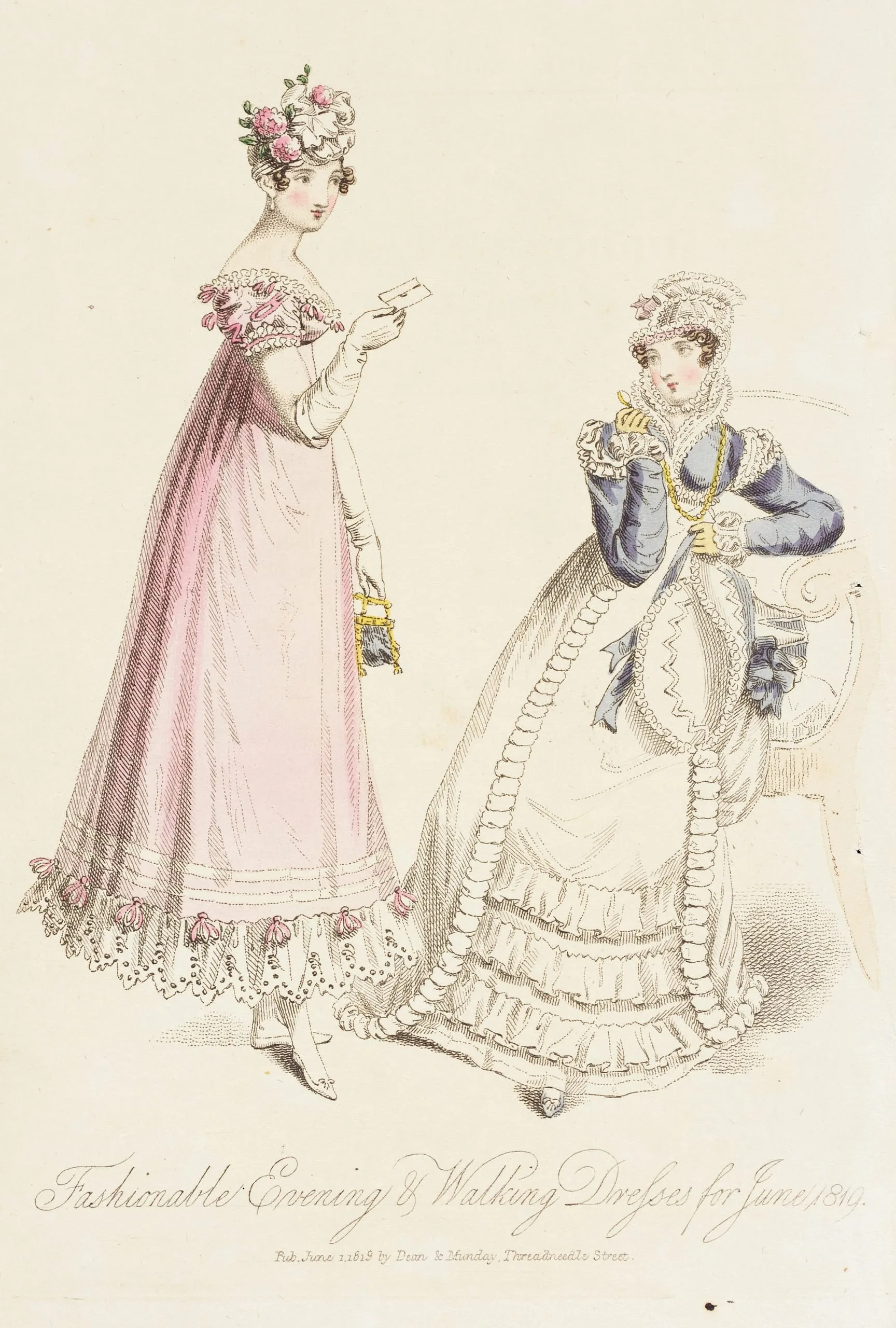 - Fashion Plate, 'Fashionable Evening & Walking Dresses for June 1819' for 'Lady's Monthly Museum'