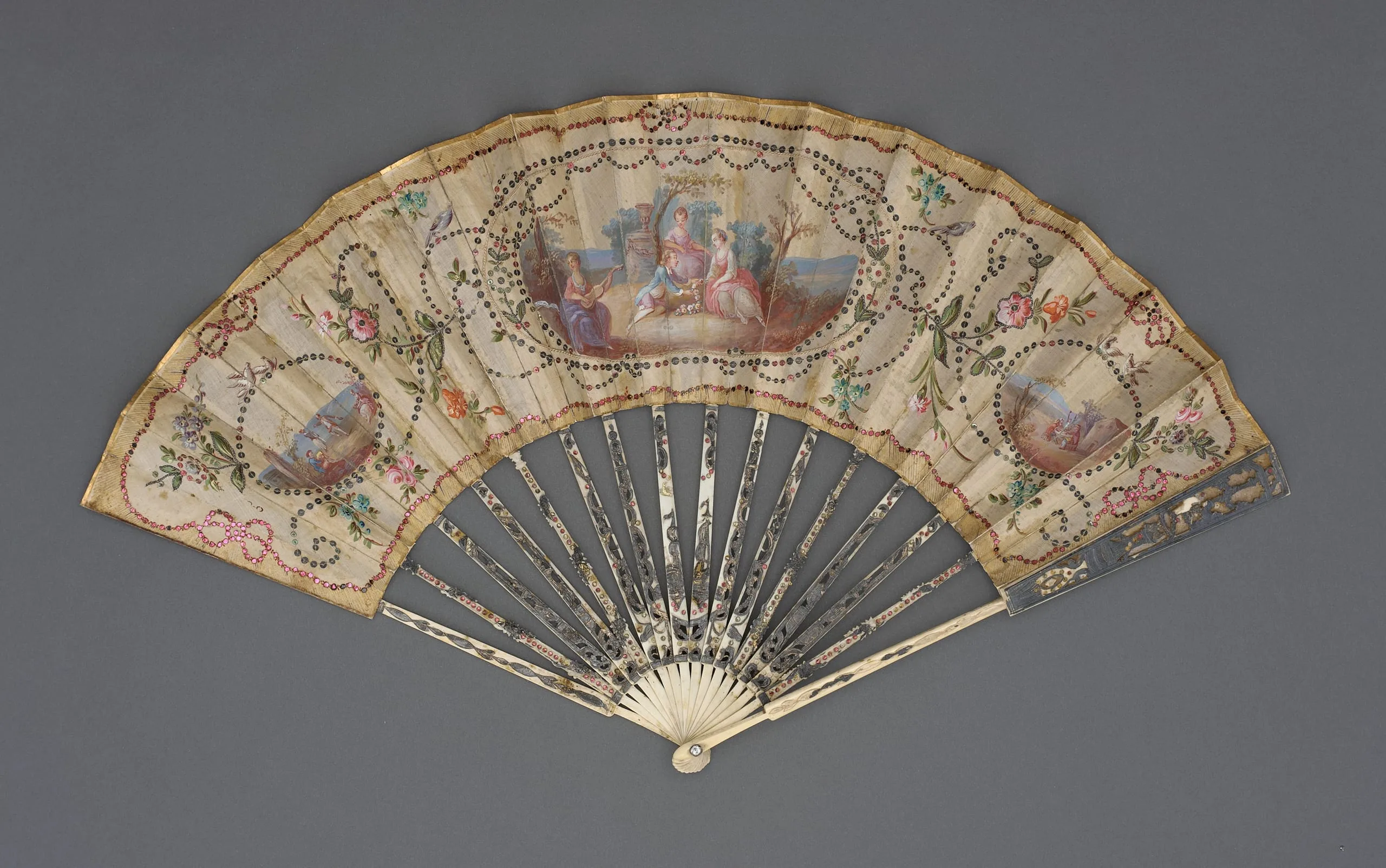 - Fan: Overall length: 10 7/8 in. (27.62 cm); Length of guard: 10 7/8 in. (27.62 cm); Depth of leaf: 5 1/8 in. (13.02 cm); Length of stick at shoulder: 5 3/4 in. (14.61 cm); Spread): 20 in. (50.8 cm)