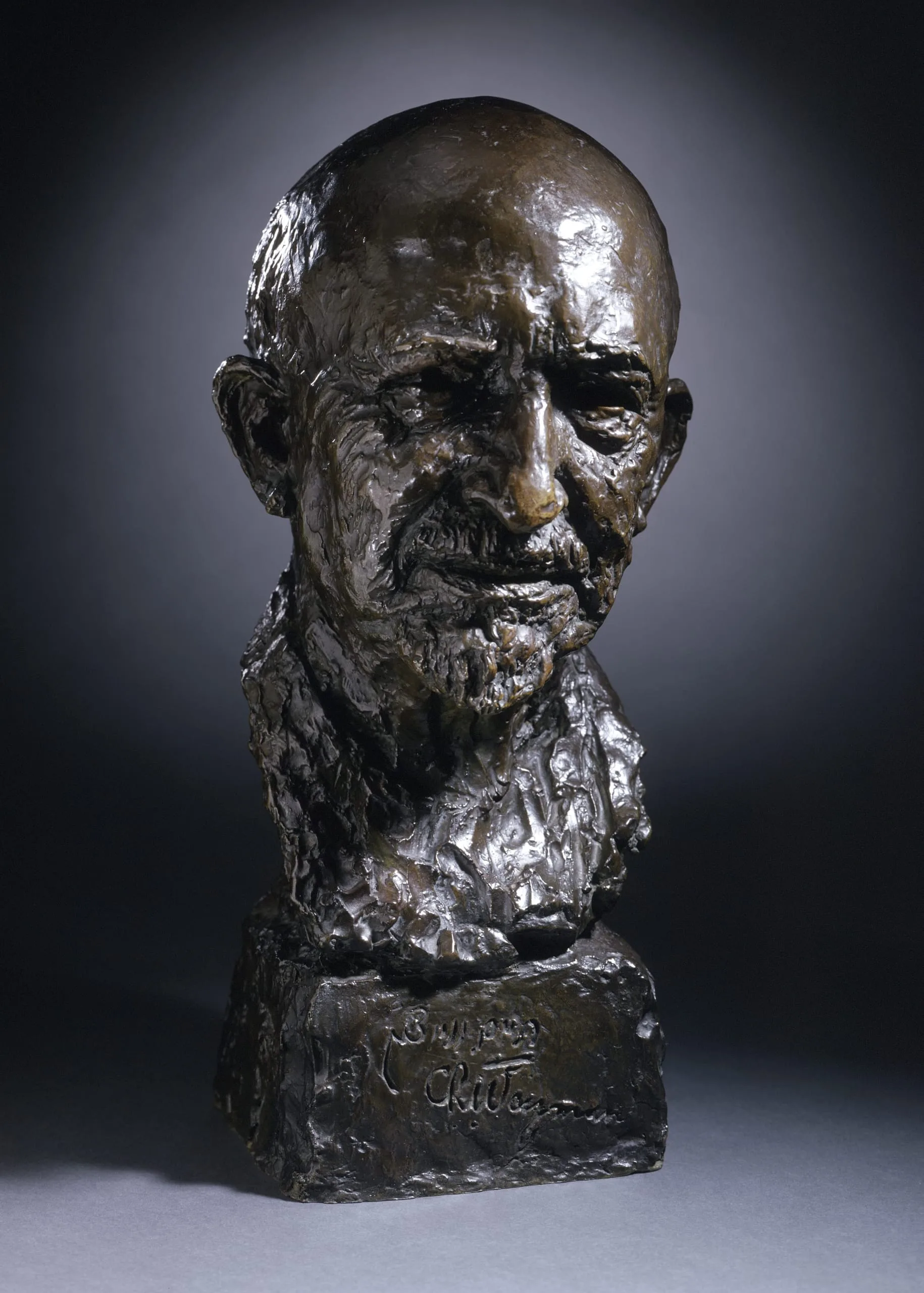 Davidson modeled Weizman during his visit to Israel in 1951, the year before the president died. The surface treatment, particularly of Weizman’s wrinkled cheeks and breast, is exceptionally sketchy.