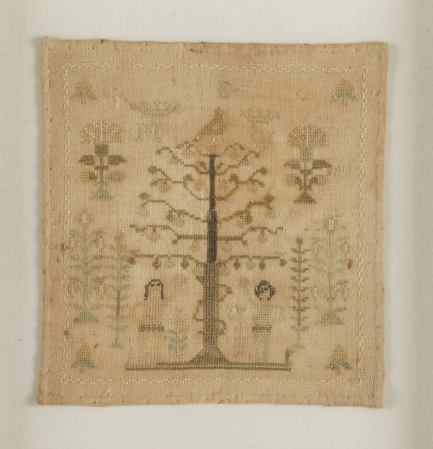 - LInen plain weave with silk embroidery