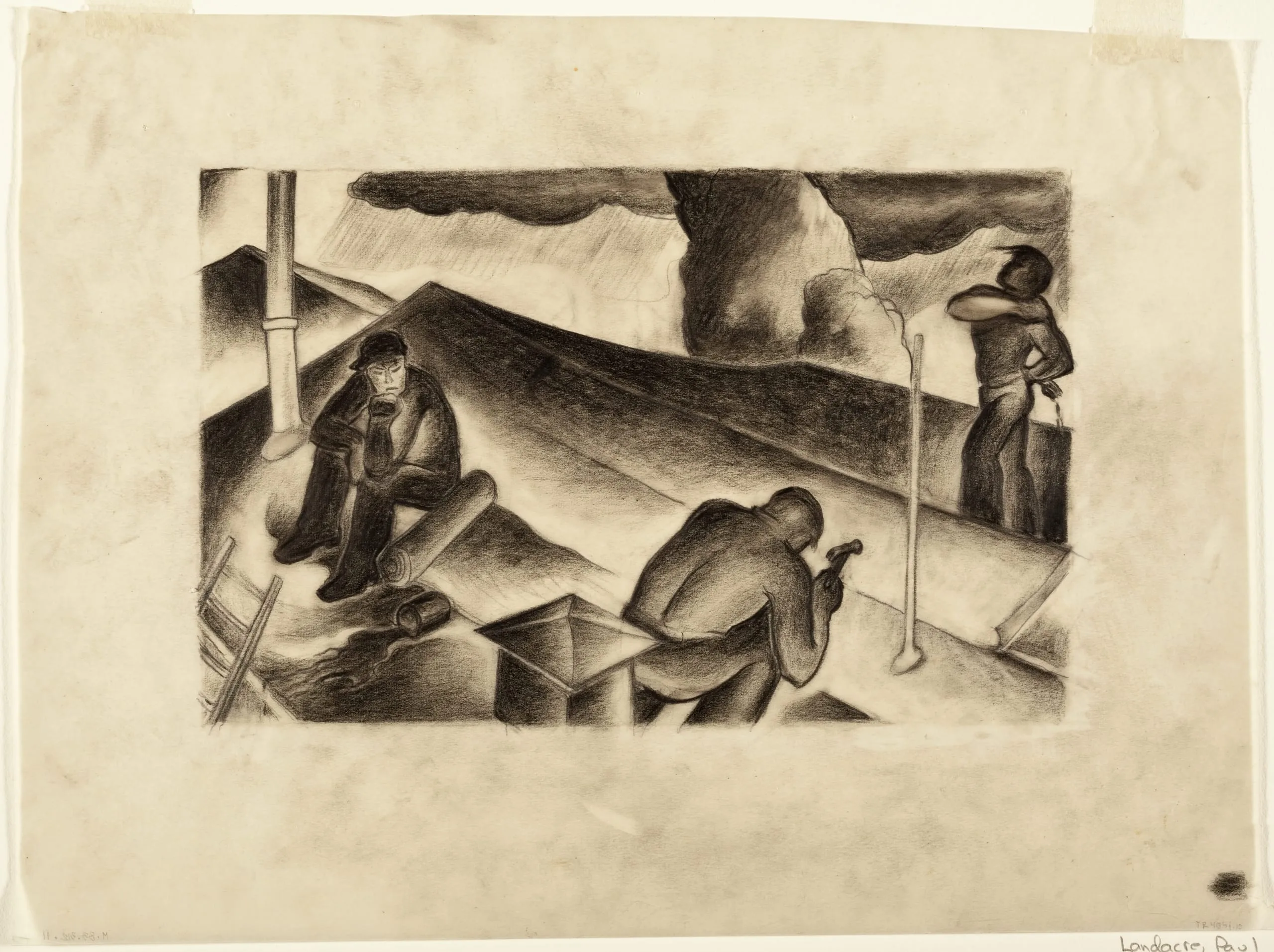 - Charcoal on onionskin paper