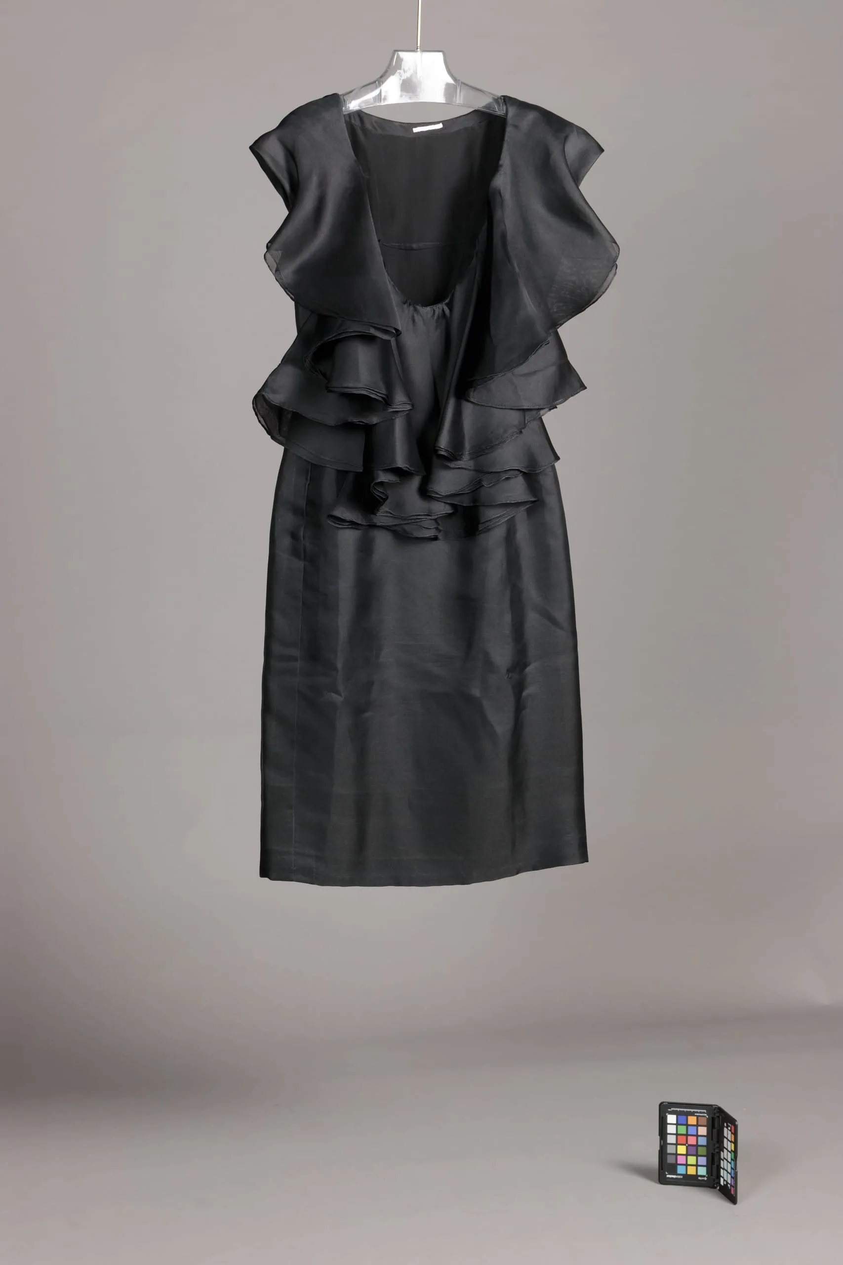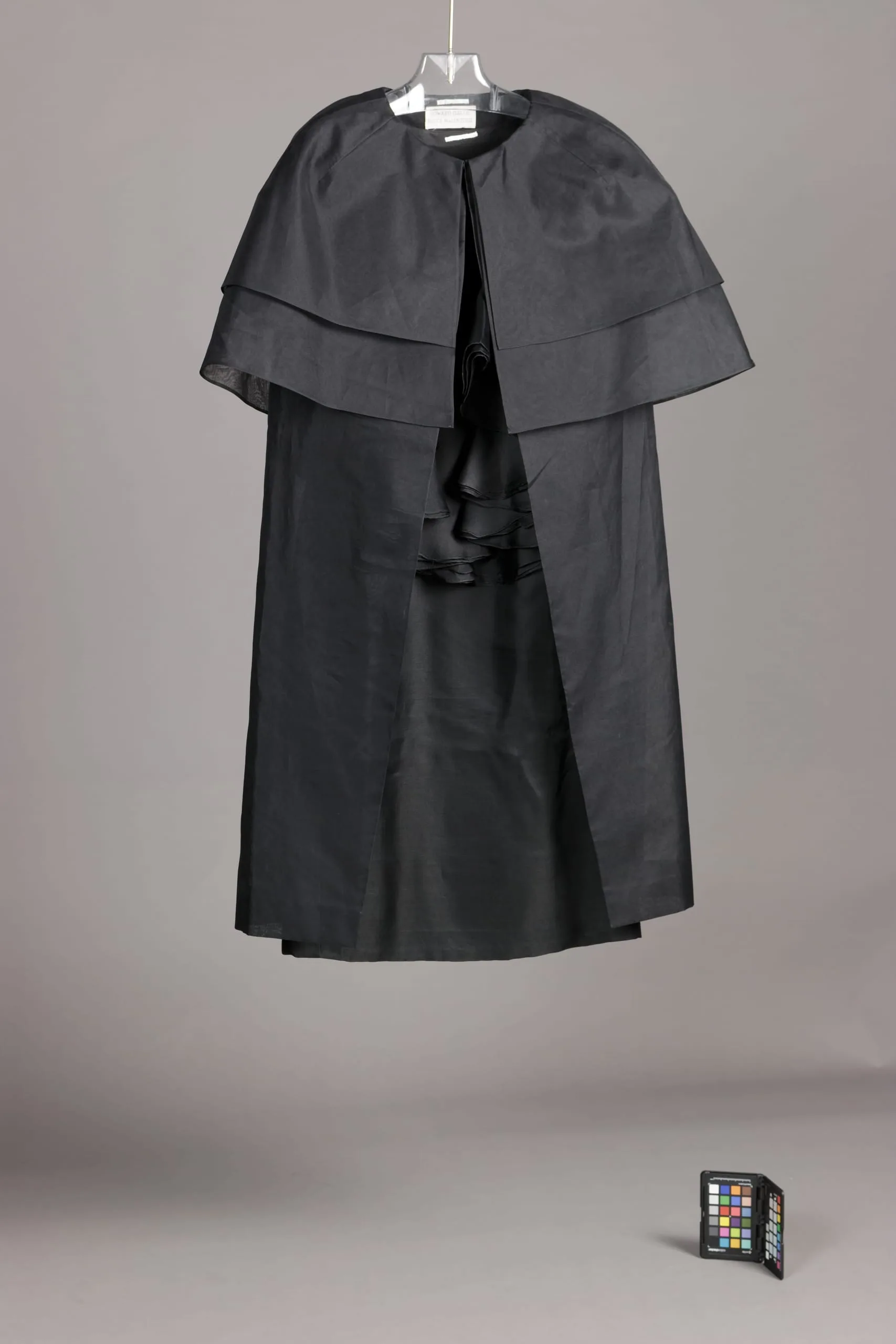 - Dress: Silk twill, silk plain weave (organza); Coat:
