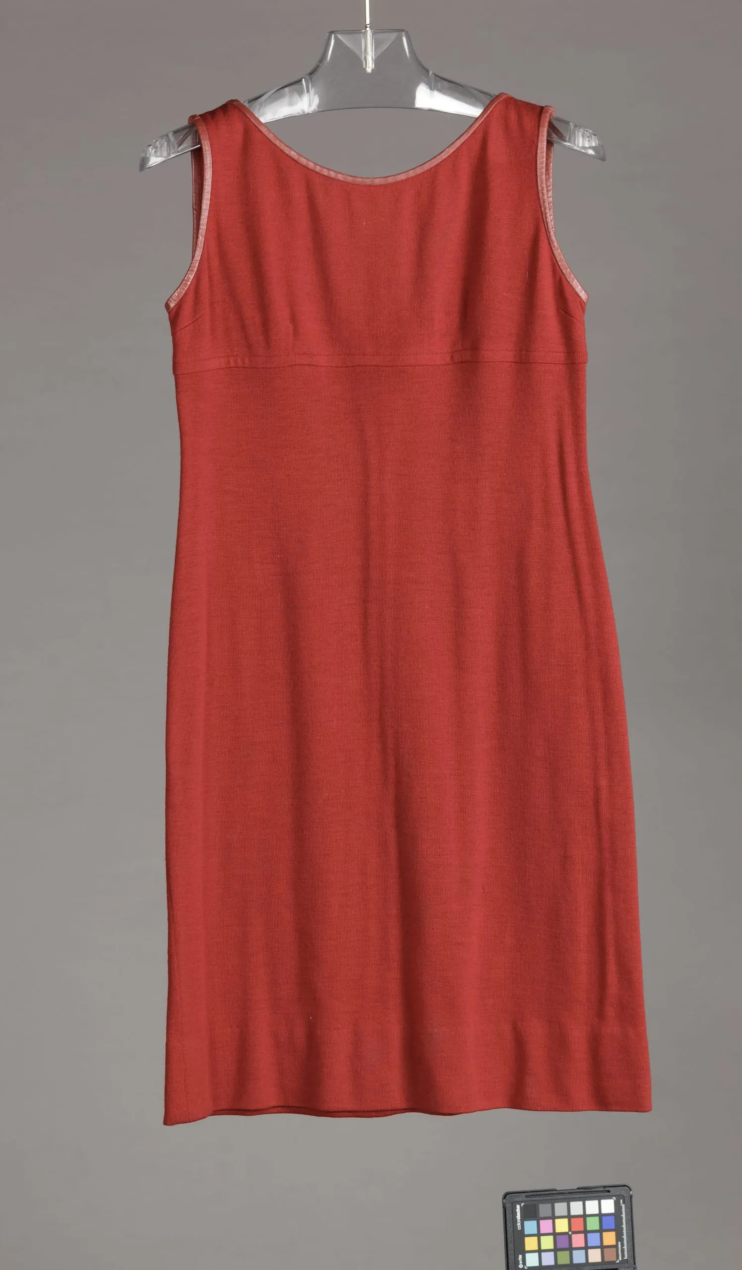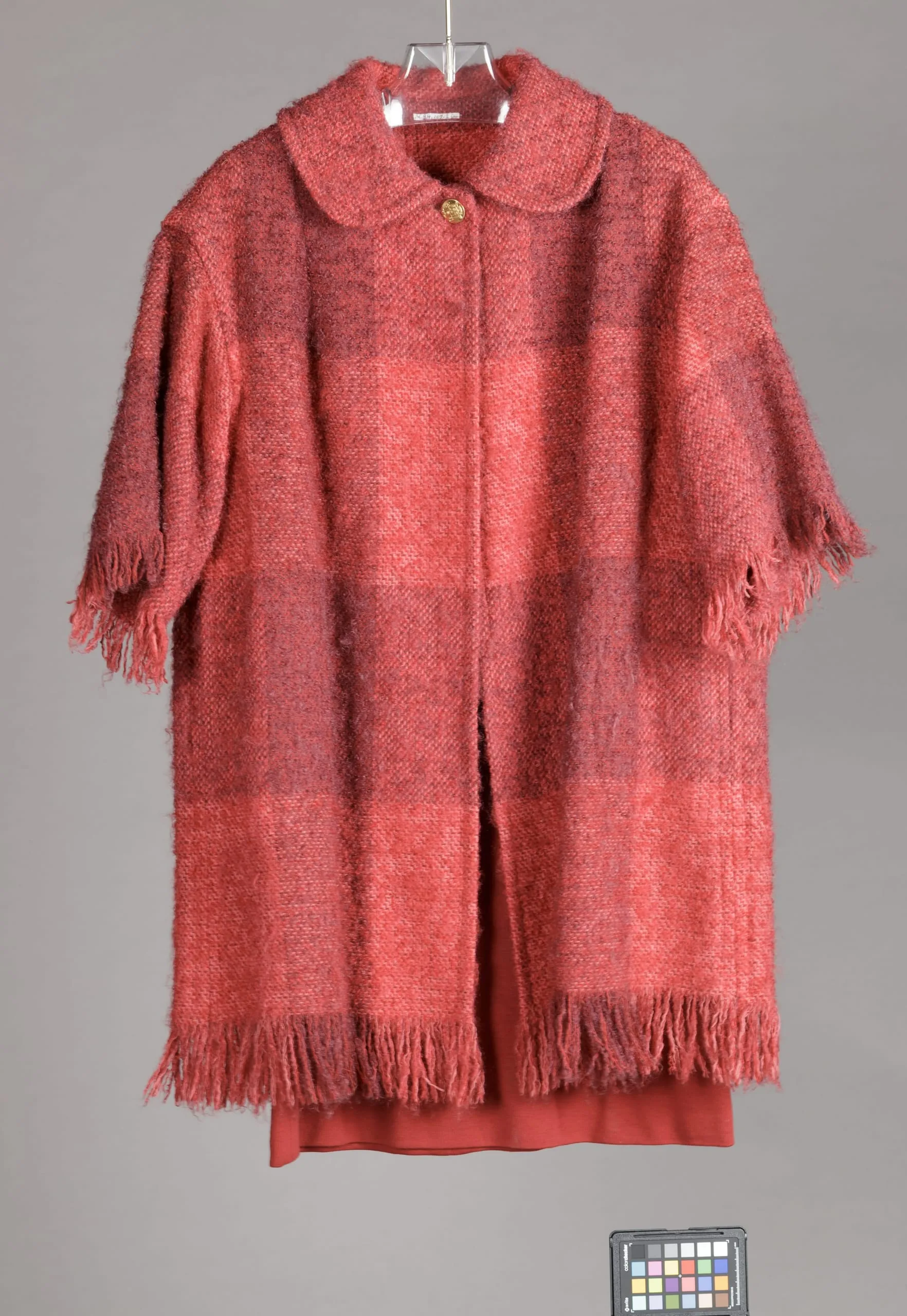 - Coat: wool/mohair twill (boucle); Dress: wool knit (jersey), leather