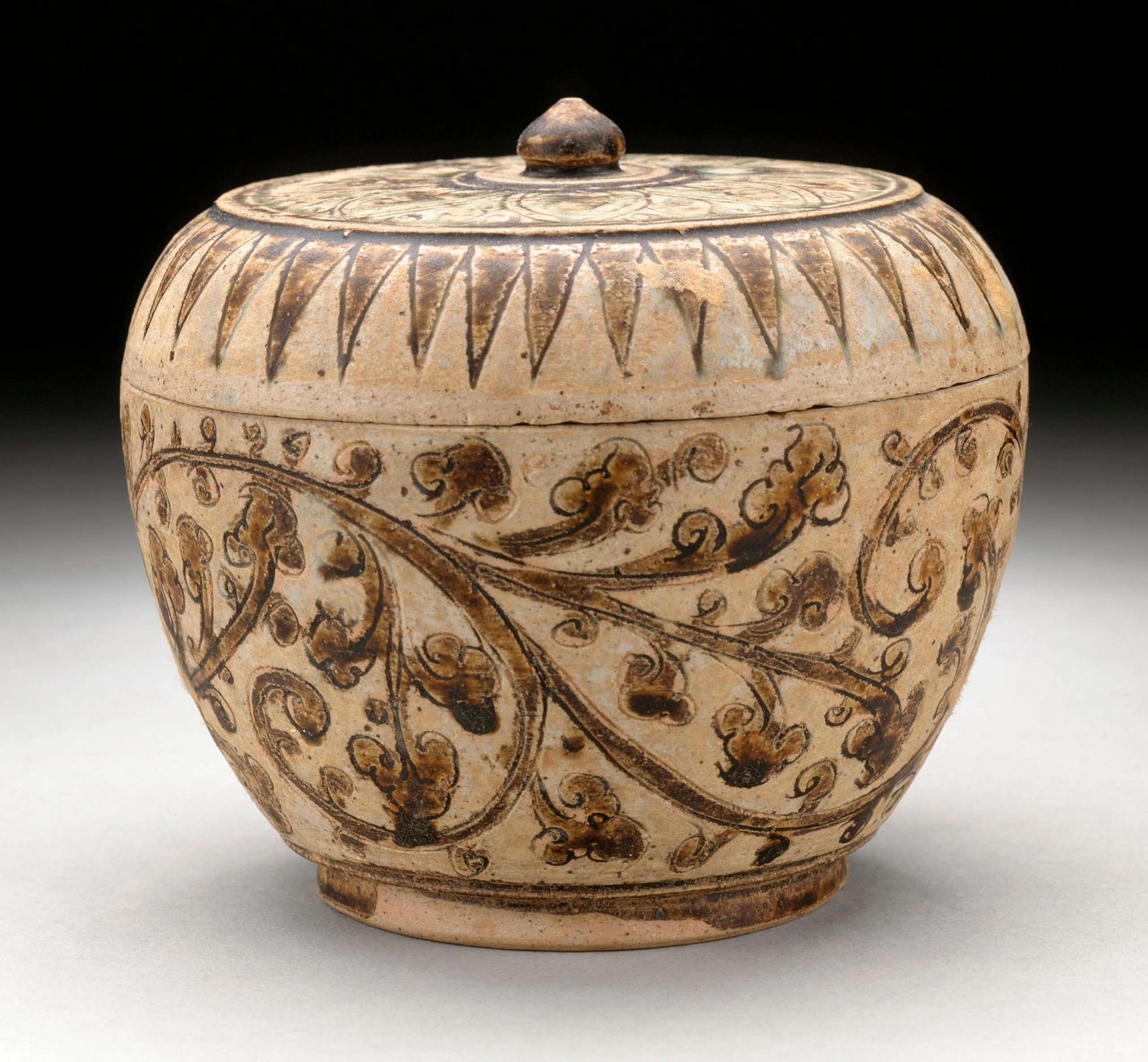- Stoneware with uncised decoration and brown and white glaze