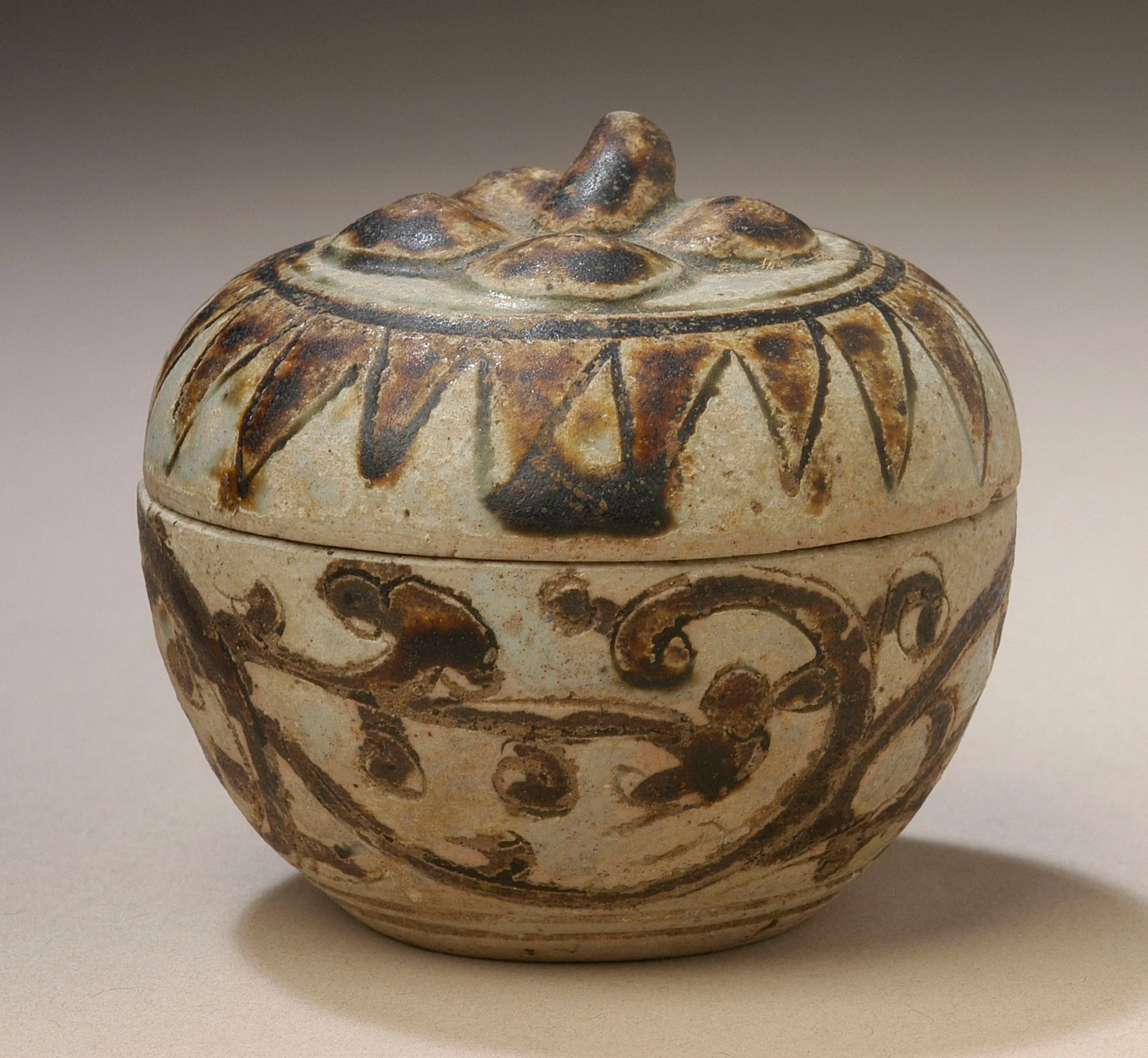 - a) Lid height: 1 1/8 in. (2.86 cm); a) Lid diameter: 2 3/8 in. (6.03 cm); b) Body height: 1 3/8 in. (3.49 cm); b) Body diameter: 2 5/16 in. (5.87 cm); Overall height: 1 3/4 in. (4.45 cm); Overall diameter: 2 3/8 in. (6.03 cm)