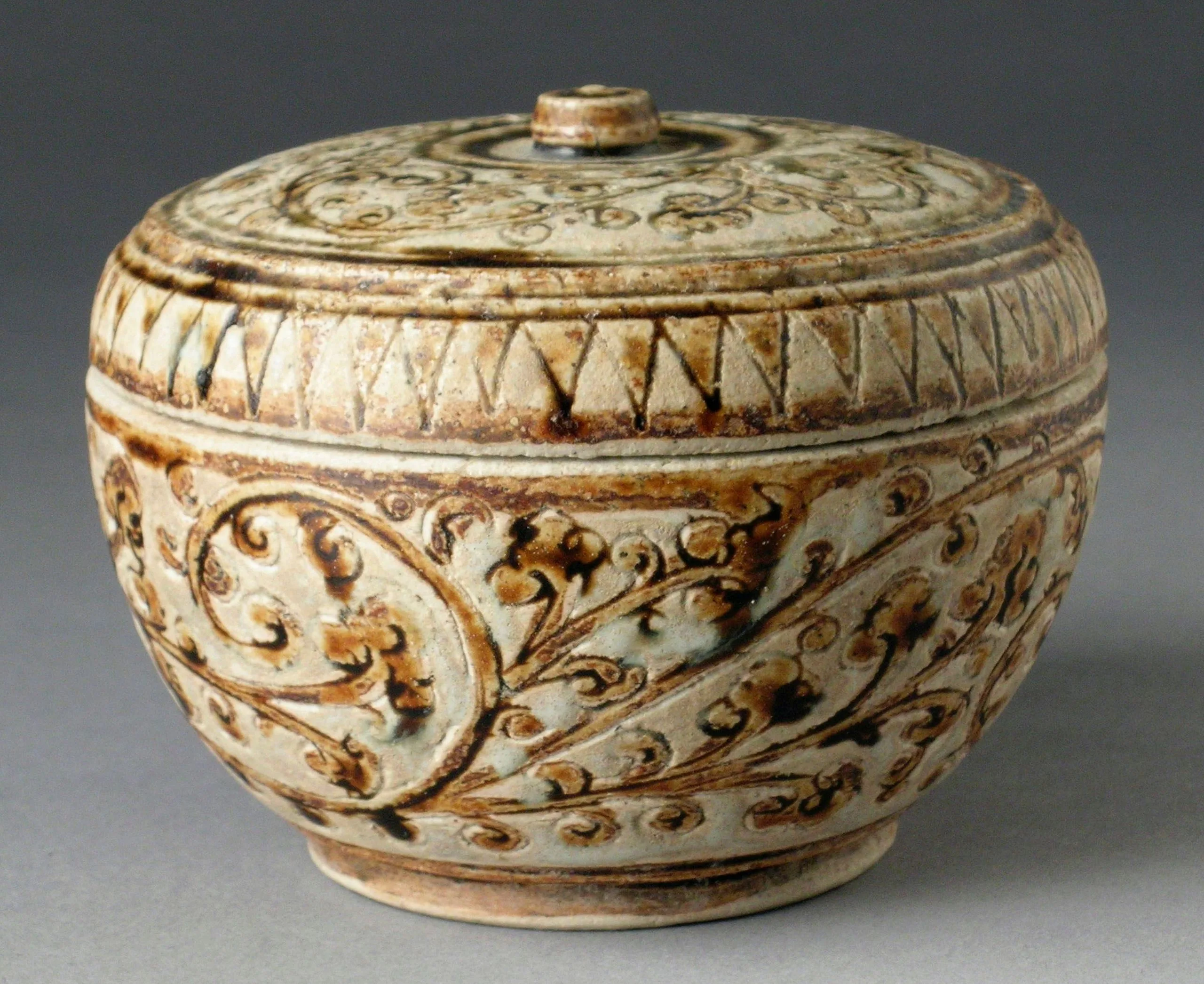 - a) Lid height: 1 1/16 in. (2.7 cm); a) Lid diameter: 4 in. (10.16 cm); b) Body height: 2 1/4 in. (5.72 cm); b) Body diameter: 4 in. (10.16 cm); Overall height: 2 3/4 in. (6.99 cm); Overall diameter: 4 in. (10.16 cm)