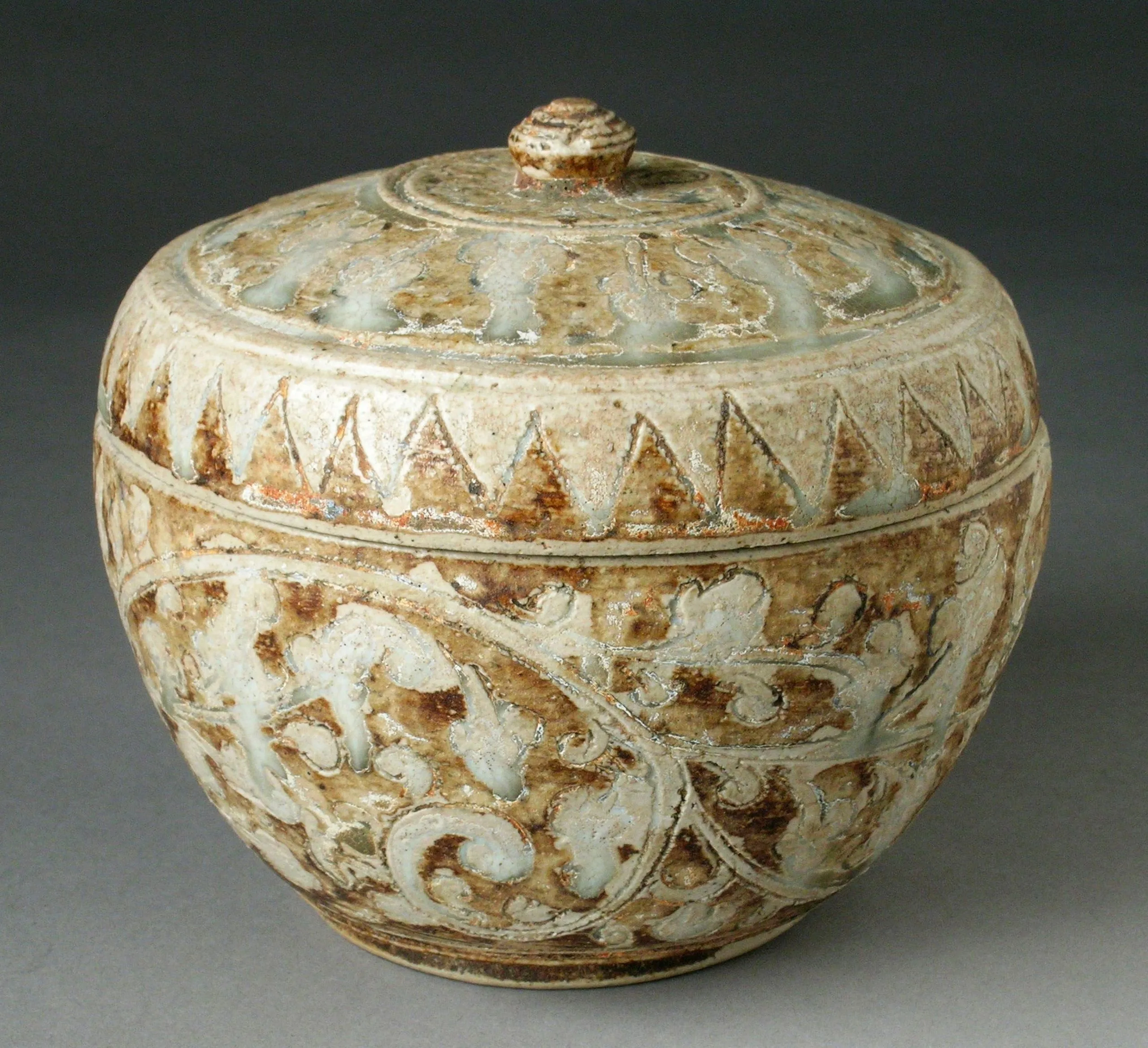- Stoneware with brown and white glaze