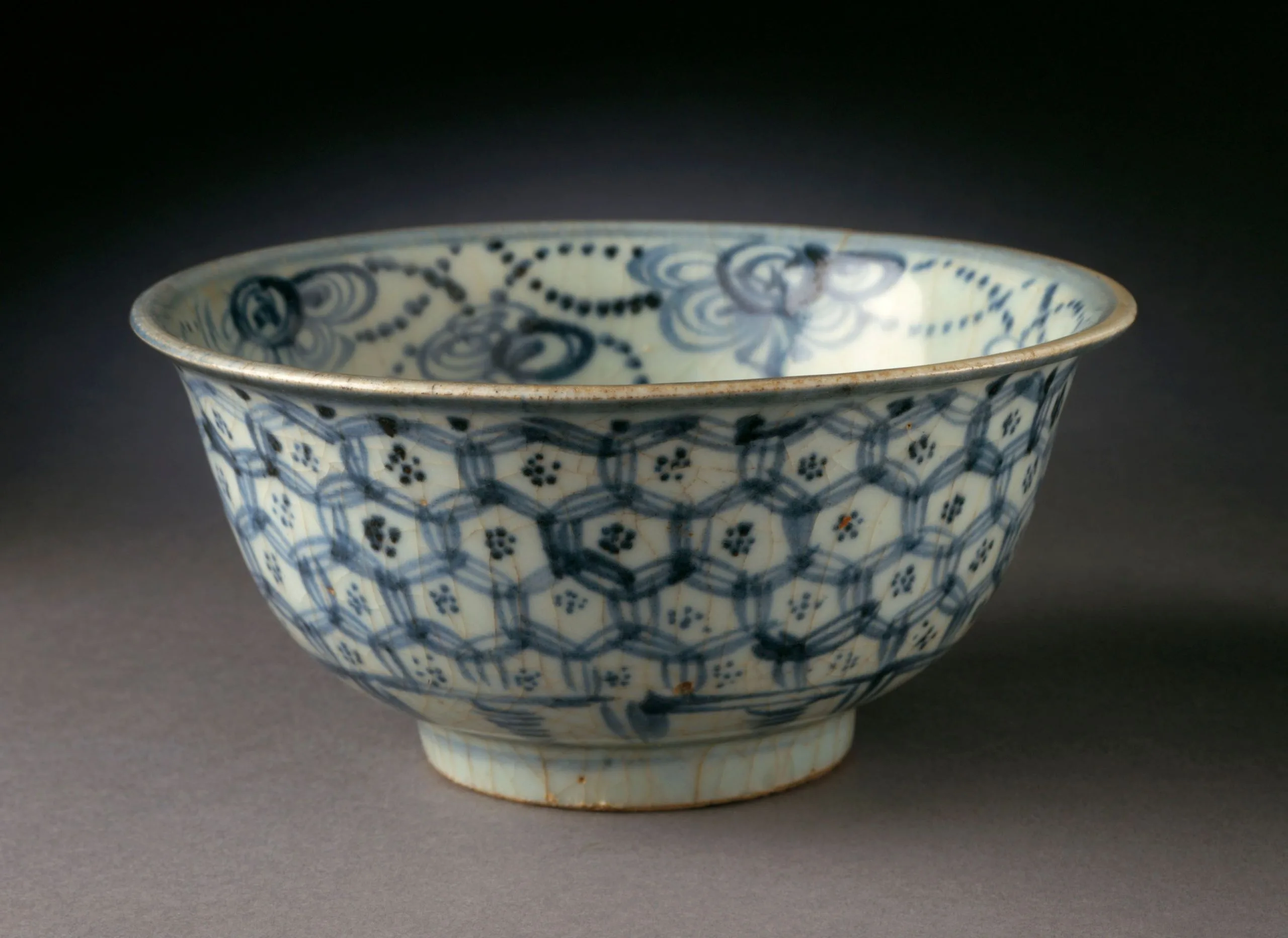 - Wheel-thrown porcelain with underglaze blue painted decoration and clear glaze