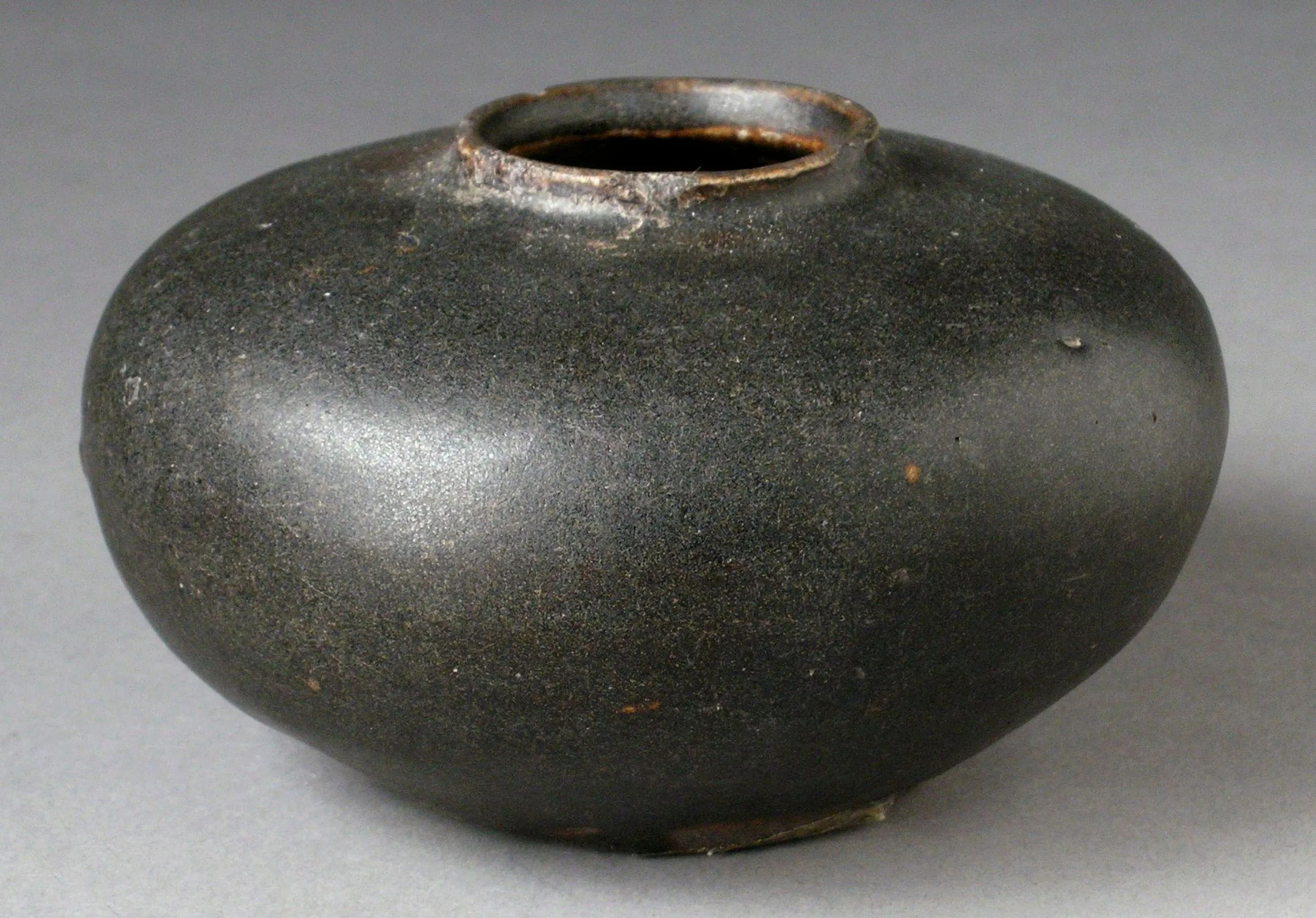 - Wheel-thrown stoneware with brown glaze