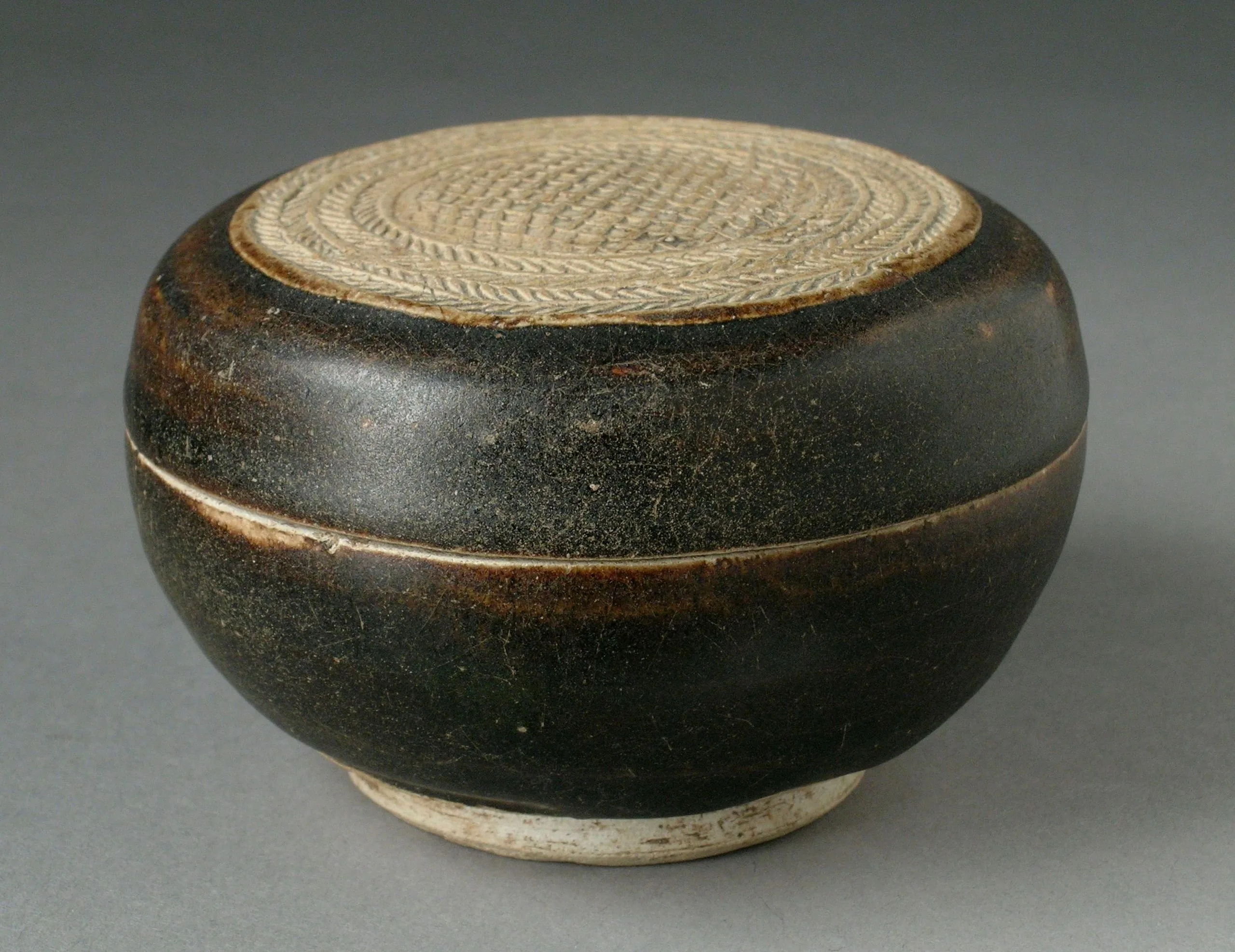 - Stoneware with incised decoration and brown glaze