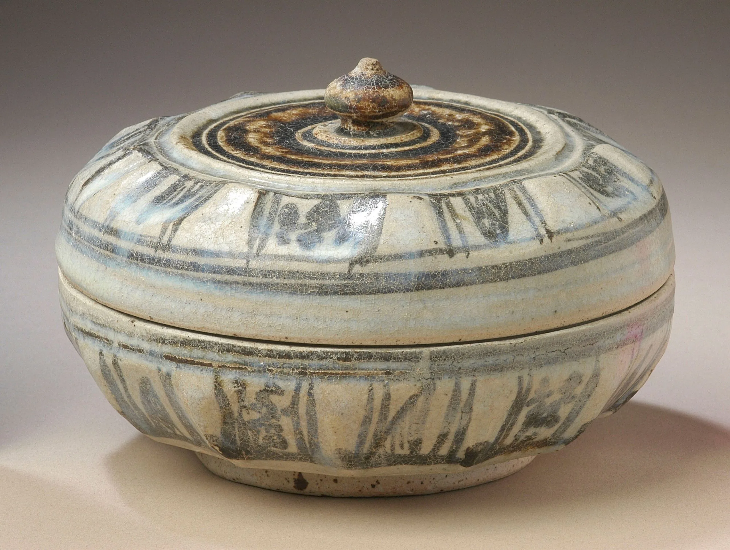 - Stoneware with underglaze brown painted decoration