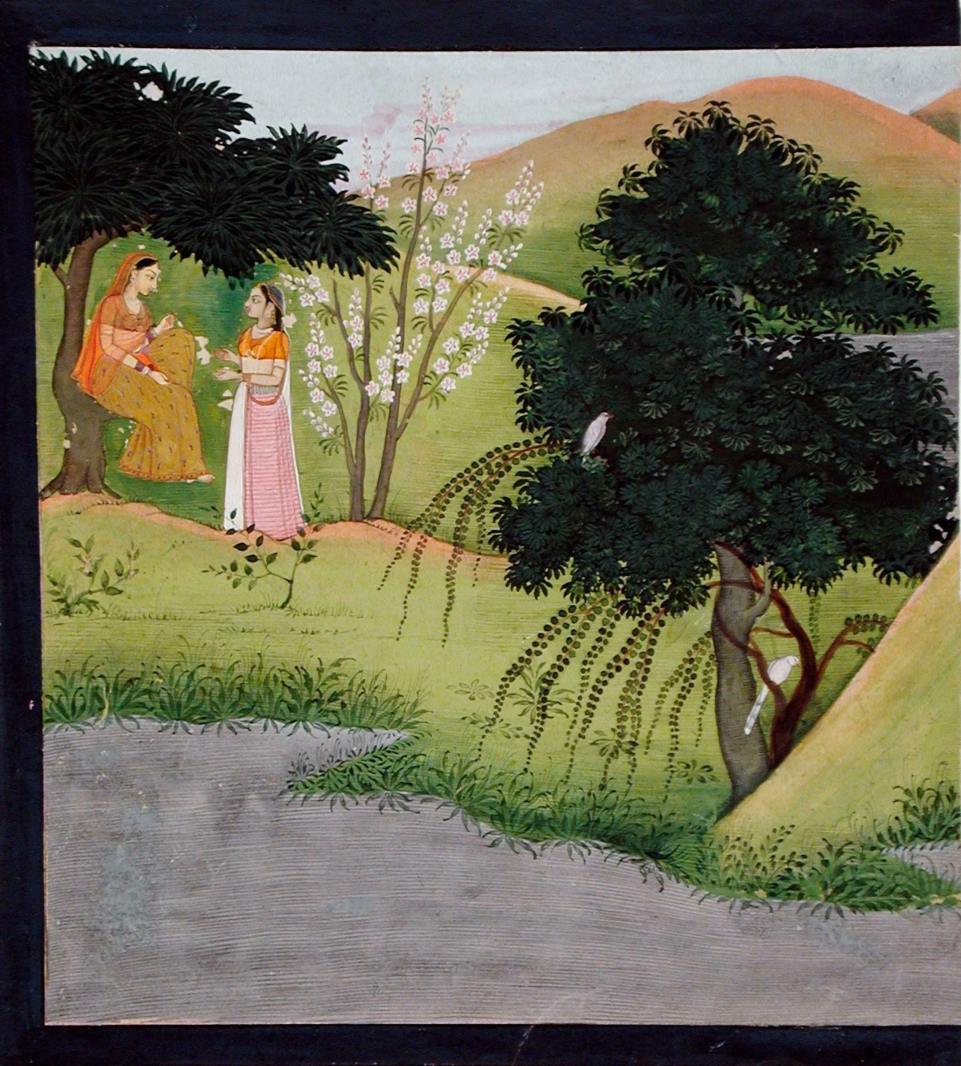 The half-folio is from a widely dispersed series known as the "Tehri Garhwal" (or Second) Gita Govinda because more than 135 original works were first discovered in the royal collection of Tehri Garhwal, Uttarakhand by N. C. Mehta in 1926. Major repositories of additional folios include the Museum Rietberg, Zurich (17 folios) and the Kronos Collections, New York (9 folios).