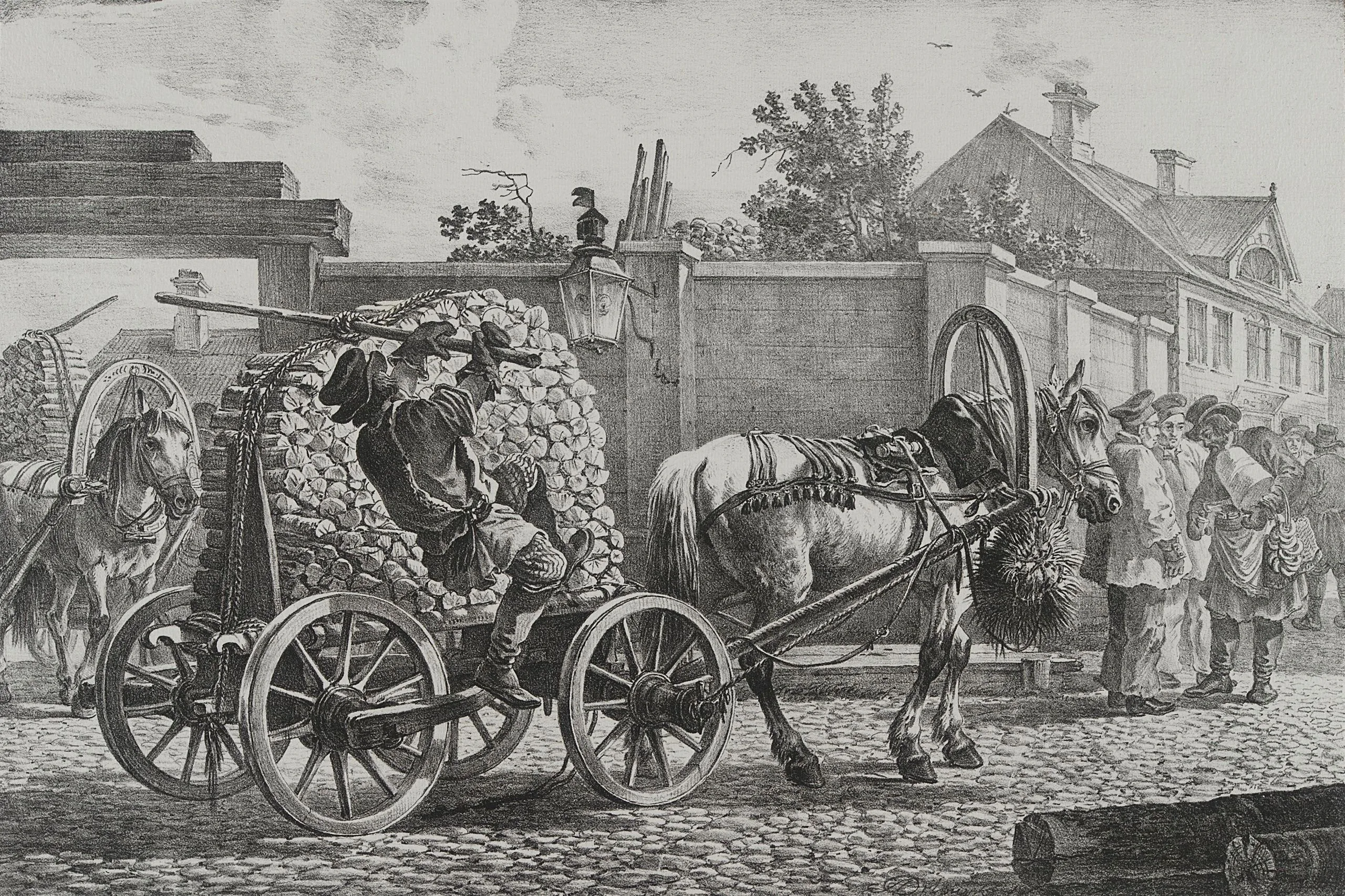 A Wagoner Tightening a Load of Wood on a Horse-Drawn Cart