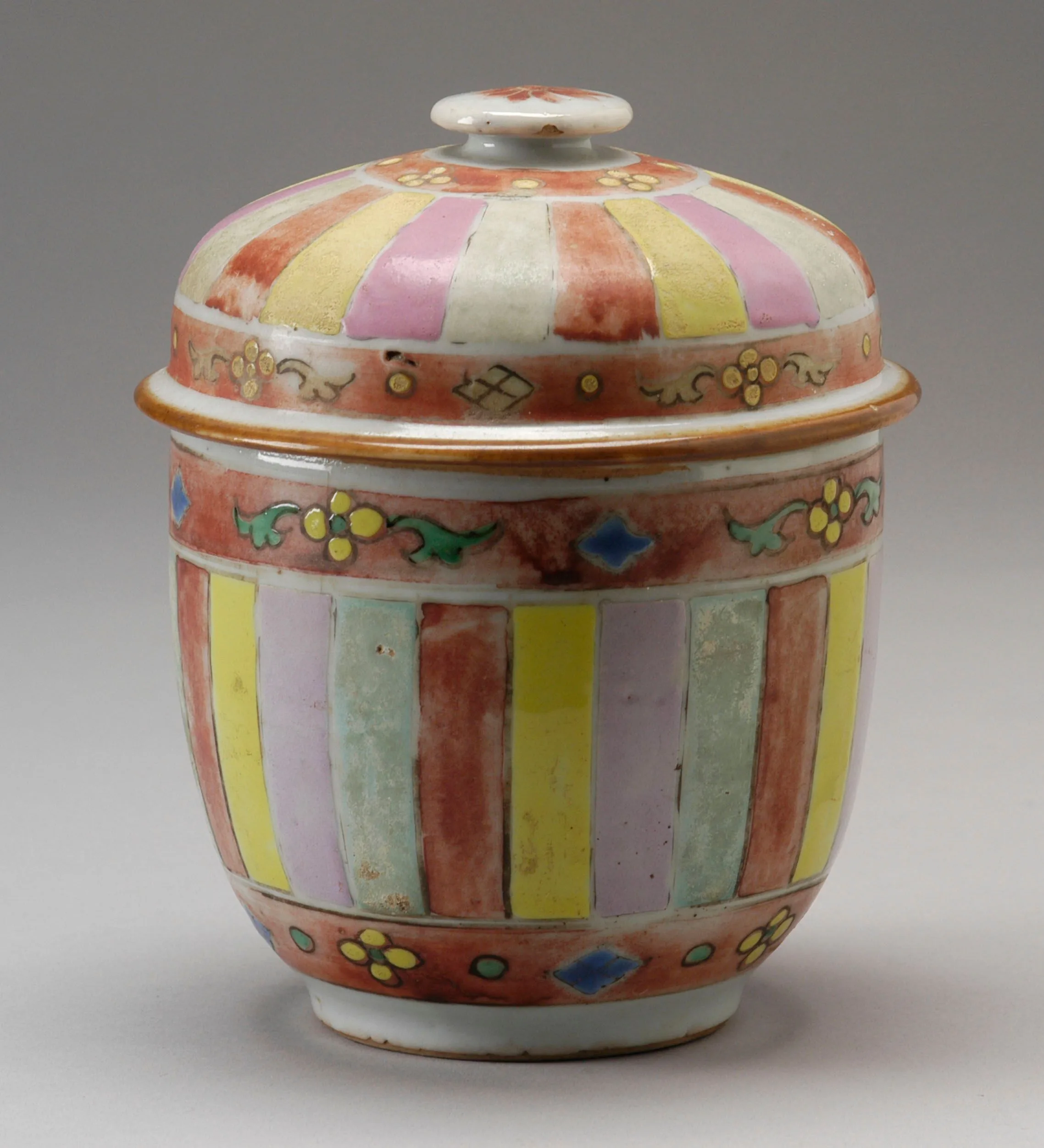- a) Lid height: 1 15/16 in. (4.92 cm); a) Lid diameter: 4 3/8 in. (11.11 cm); b) Body height: 3 9/16 in. (9.05 cm); b) Body diameter: 3 15/16 in. (10 cm); Overall height: 5 1/2 in. (13.97 cm); Overall diameter: 4 3/8 in. (11.11 cm)