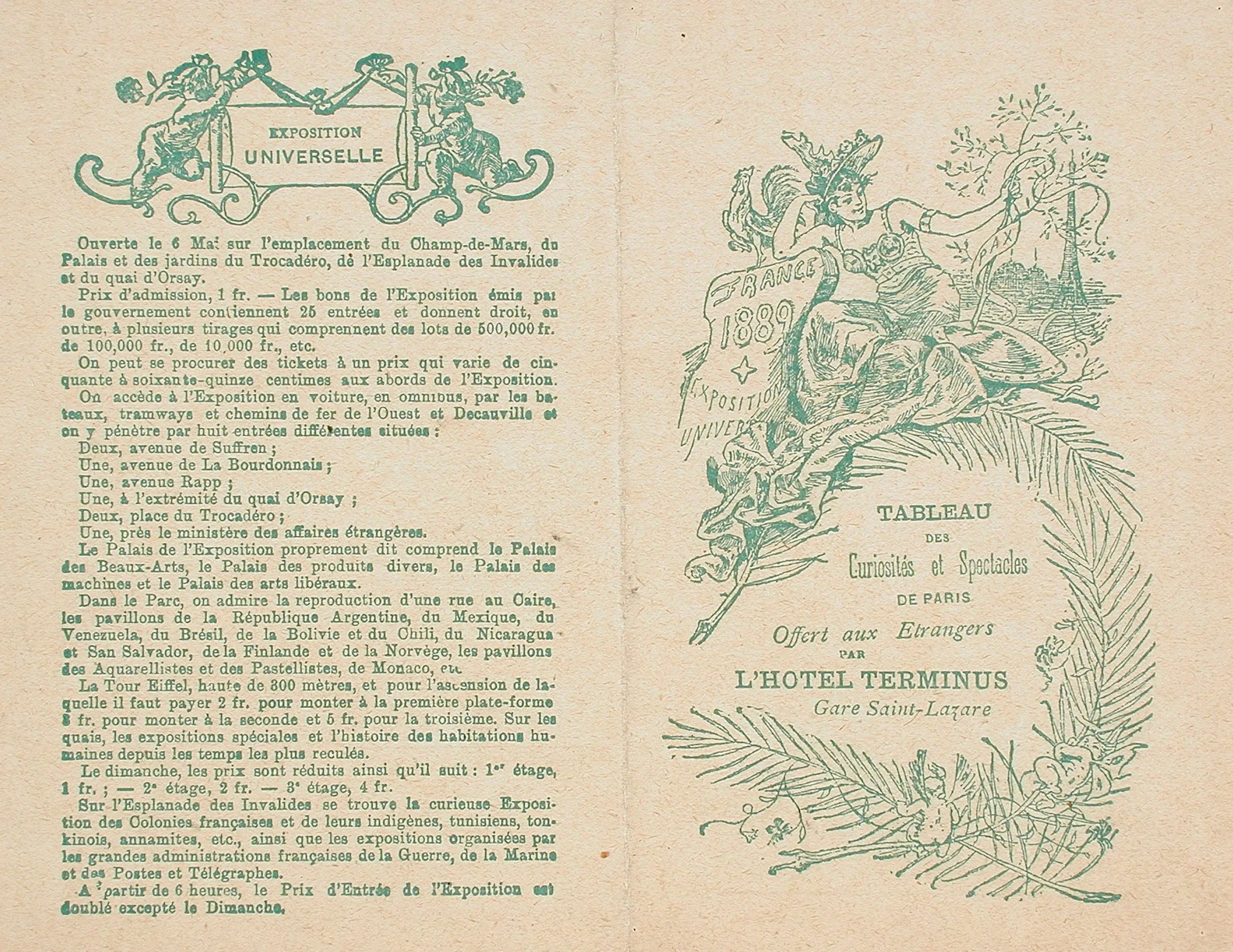 - Tableau des curiositée et spectacles de Paris offert aux etrangers par L'Hotel Terminus