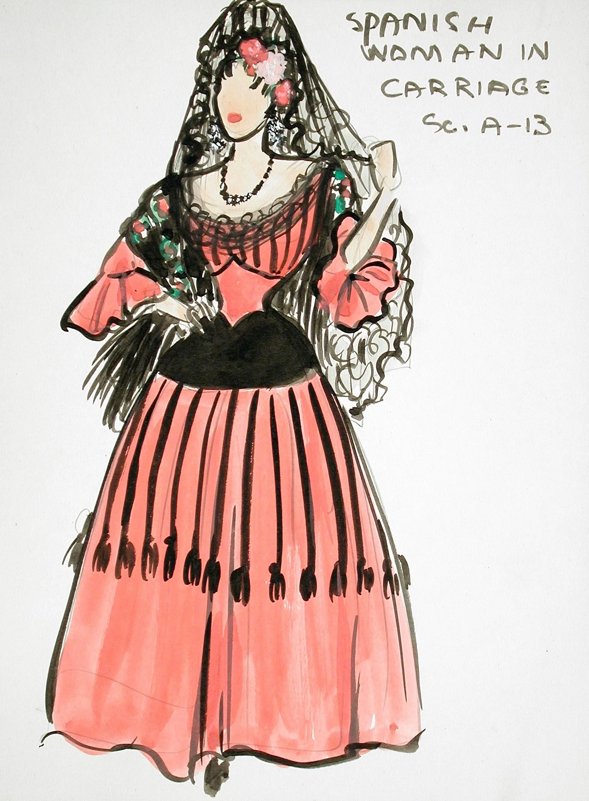 - Costume Sketch for Spanish Woman in Carriage Scene A-13 in 20th Century Fox's Production of 'Seven Cities of Gold'