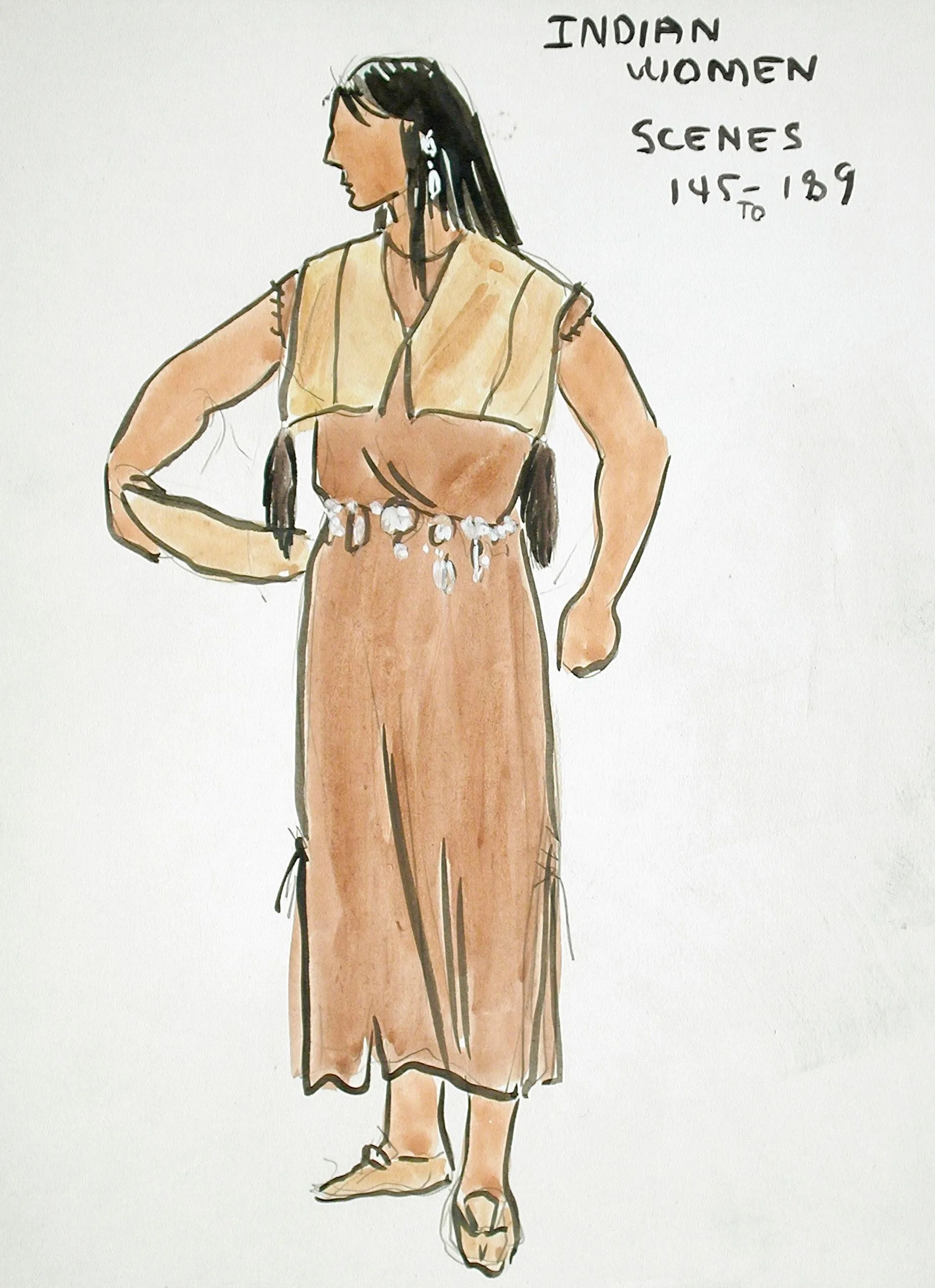 - Costume Sketch of Indian Women Scenes 145 to 189 in 20th Century Fox's Production of 'Seven Cities of Gold'
