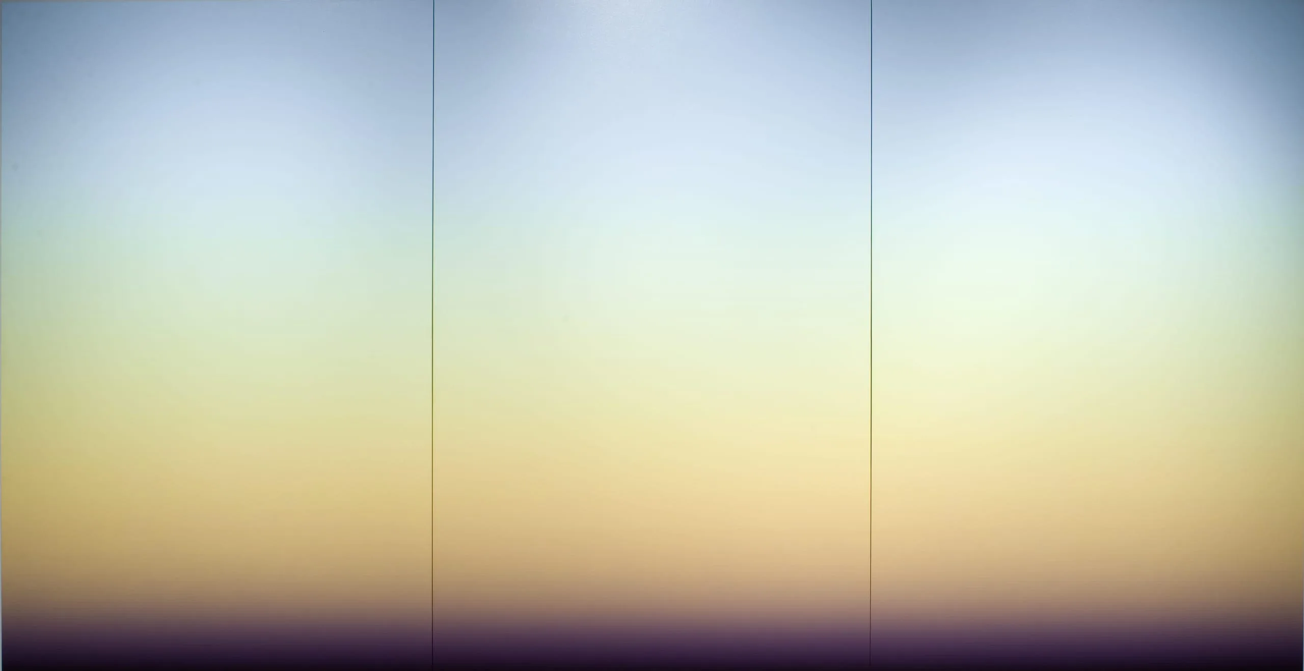 An interest in both light and technology inspired Norman Zammitt’s signature paintings. Starting in the early 1970s, he created abstractions on canvas based purely on color, which he executed using computer-generated logarithms. Zammitt would weigh precise amounts of different colors on a scale, using five basic colors to create a total of 48 unique shades, which he then painted in order. These paintings, including Untitled, hover between landscape and pure abstraction while relying on scientific exactitude.