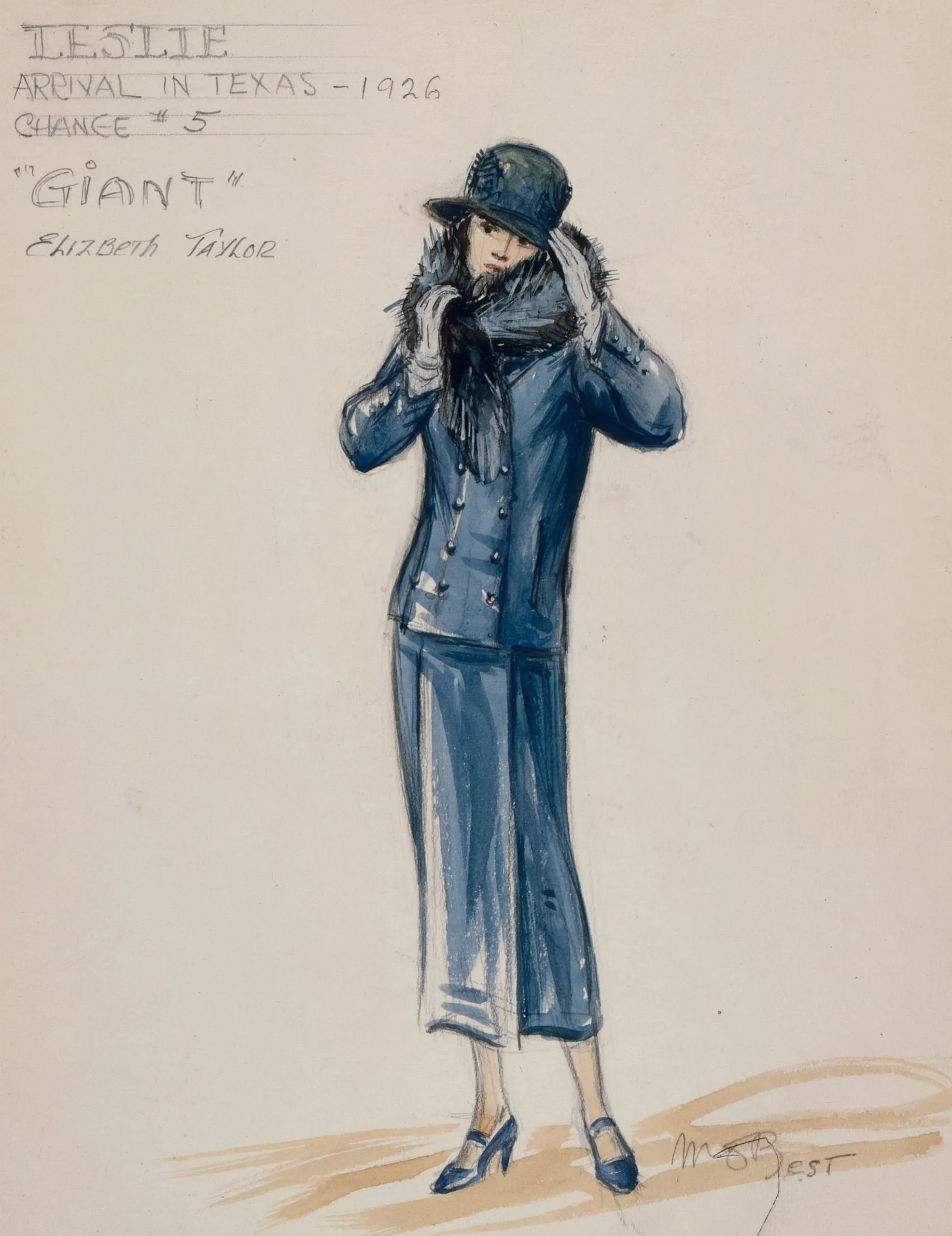 - Costume Sketch of Elizabeth Taylor as Leslie Benedict in the Warner Brothers Production, 'Giant'