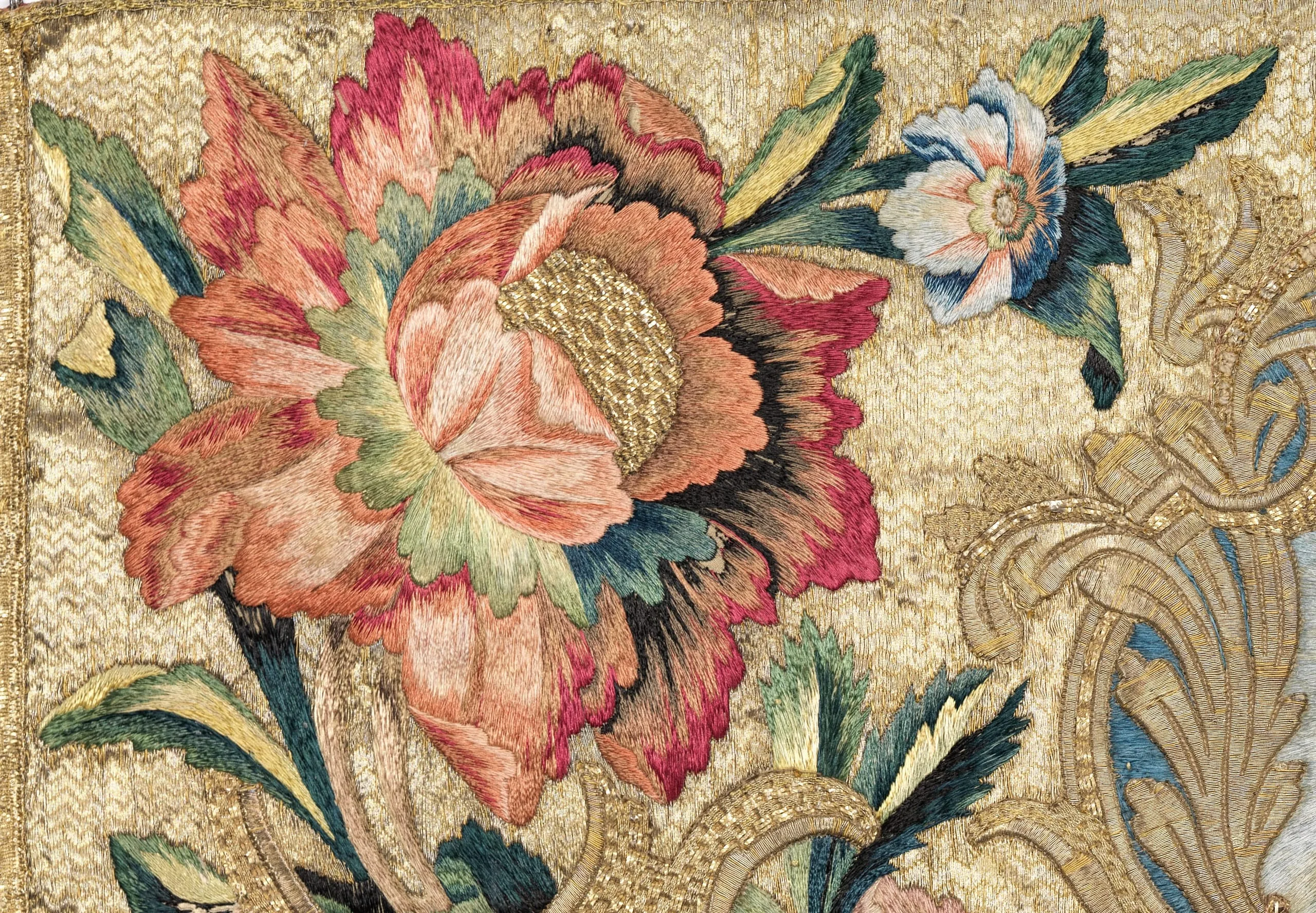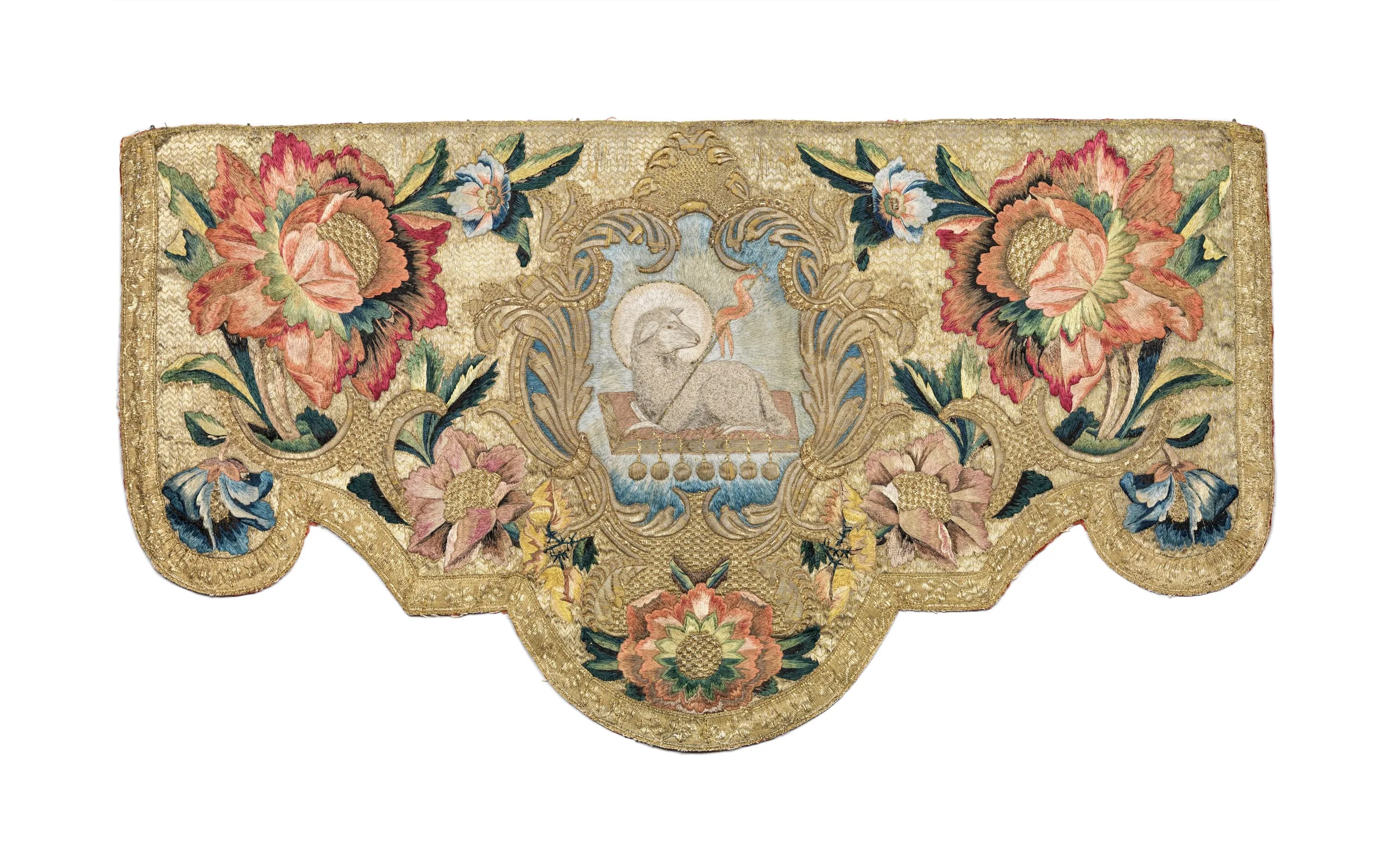 Embroidered for the church, vestments were among the most resplendent art forms of eighteenth-century Mexico. Meant to imbue Christ’s vicars with special meaning, these garments were created as sets in guild workshops led by master craftsmen, as well as by nuns in conventual settings. The quality of the embroidery, alongside the abundant use of silk and gold, reveals the enormous resources invested in their production. Constructed with an aesthetic and design program that came from Europe, and employing silk and gold and silver threads imported from China and Spain, these elaborate religious vestments embody the intersection of cultures made possible by global trade networks.