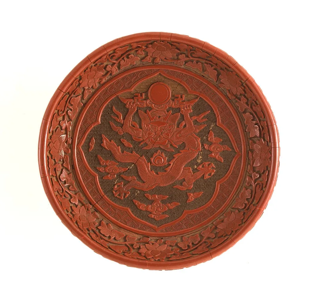 - Dish (Pan) with Dragon Raising a Disk