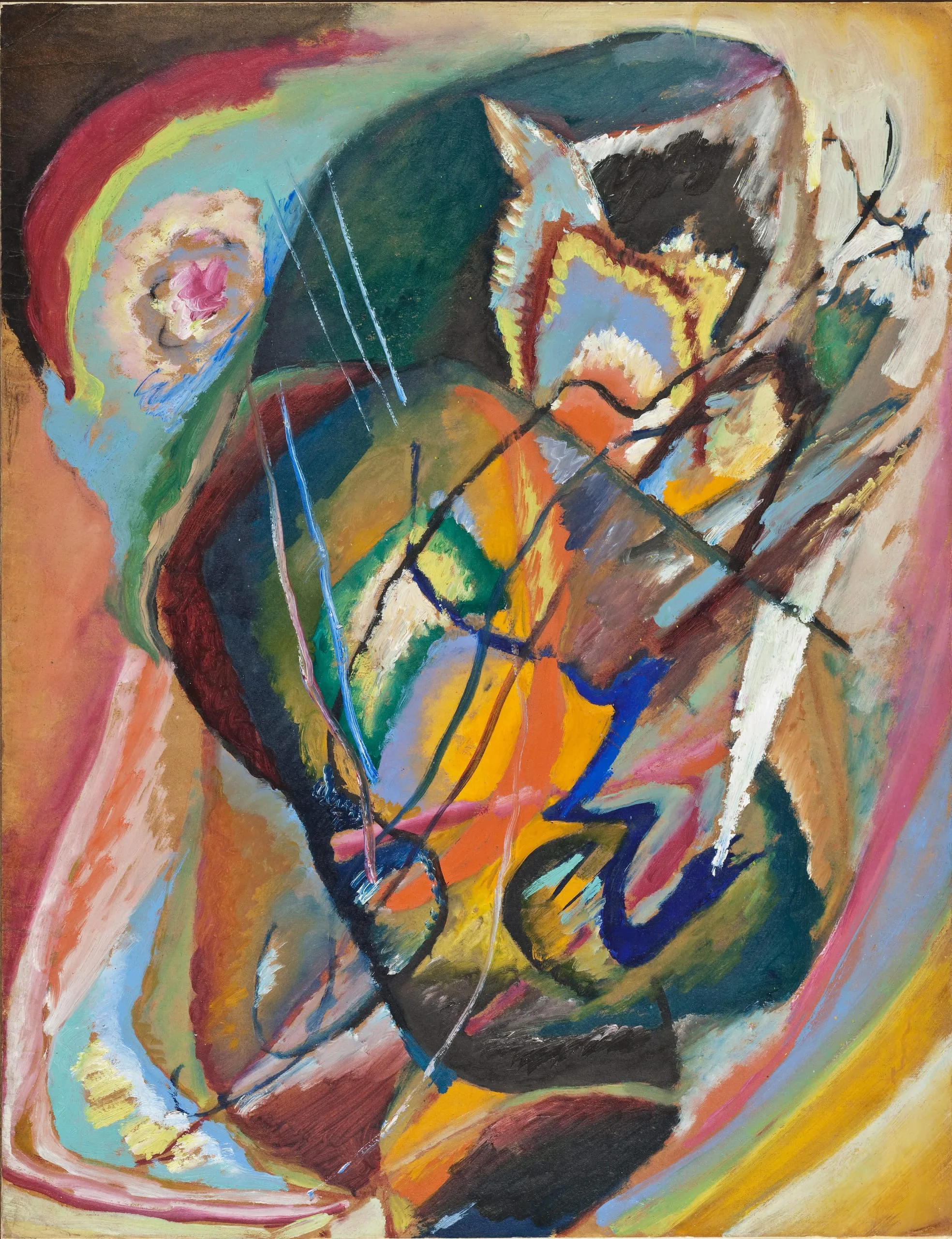This painting, once owned by the artist’s partner and fellow painter, Gabriele Münter, was later acquired by Hans Hofmann, a German painter who brought it to the United States when he emigrated in 1932. Hofmann’s own teaching on abstraction was highly influential to the development of Abstract Expressionism in the United States.
