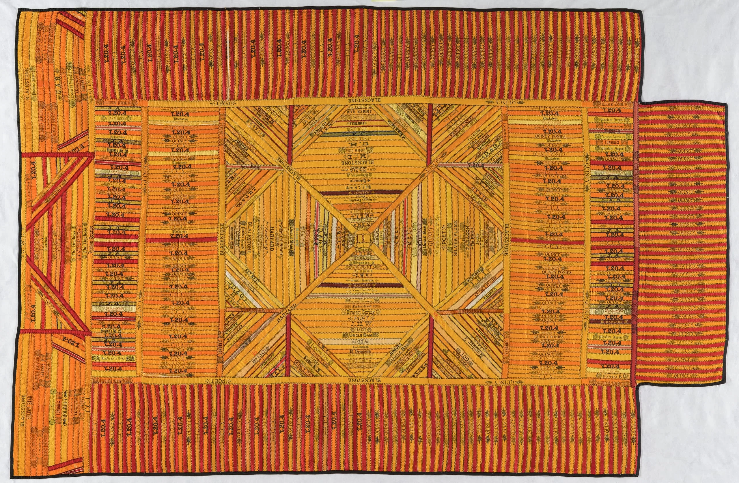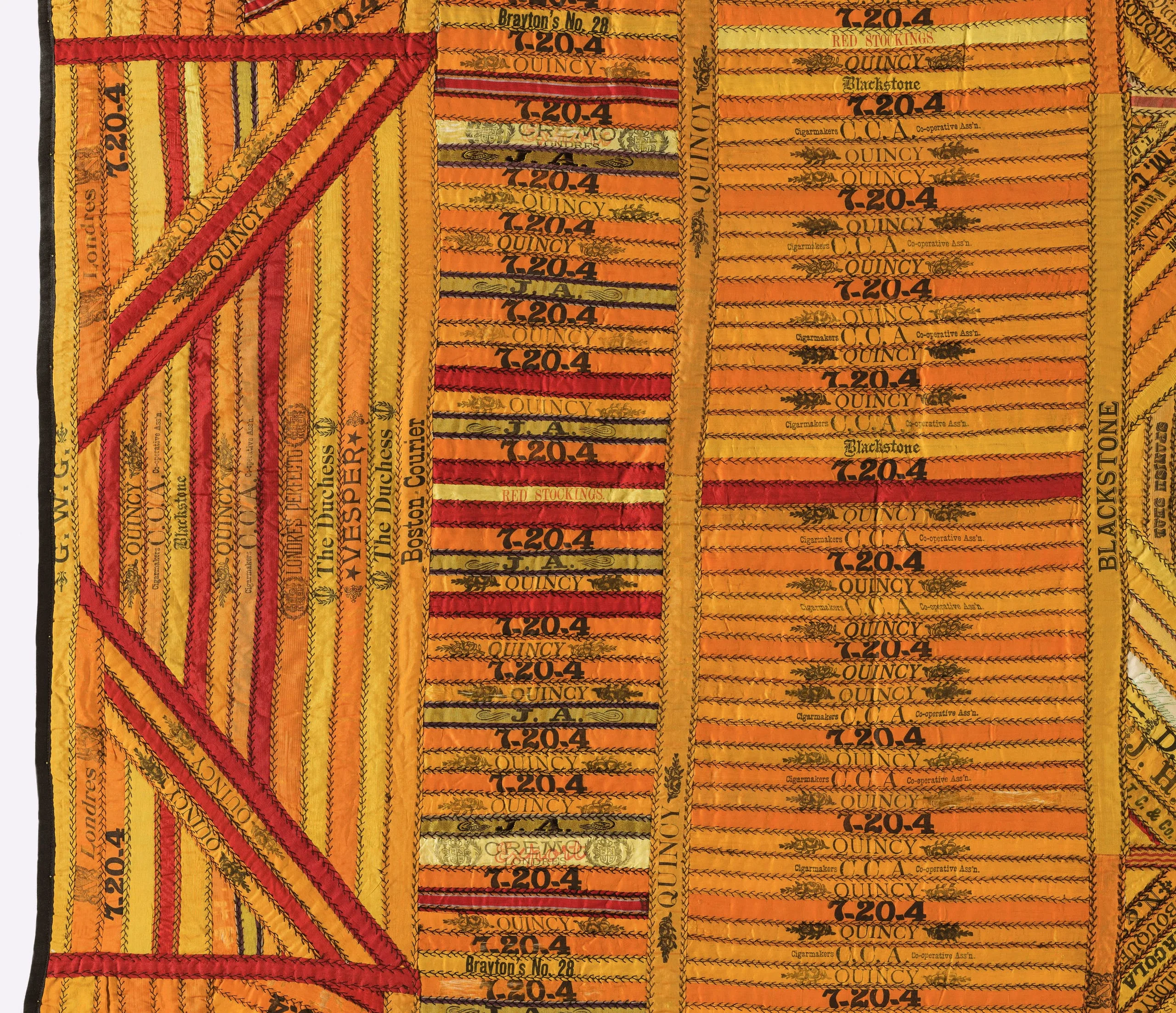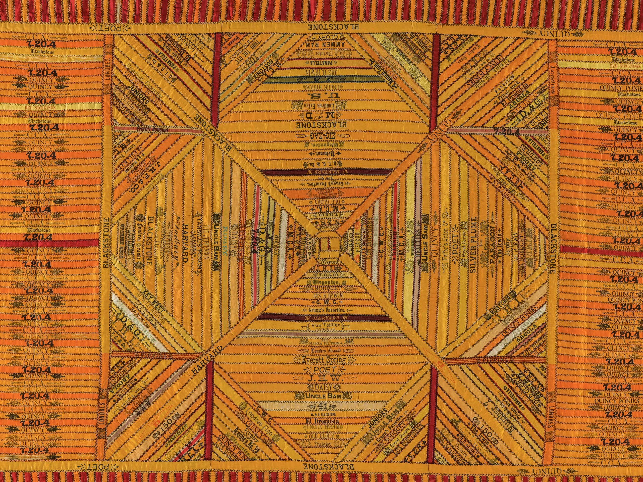 - Silk plain weave and twill ribbons (cigar bands), printed and quilted