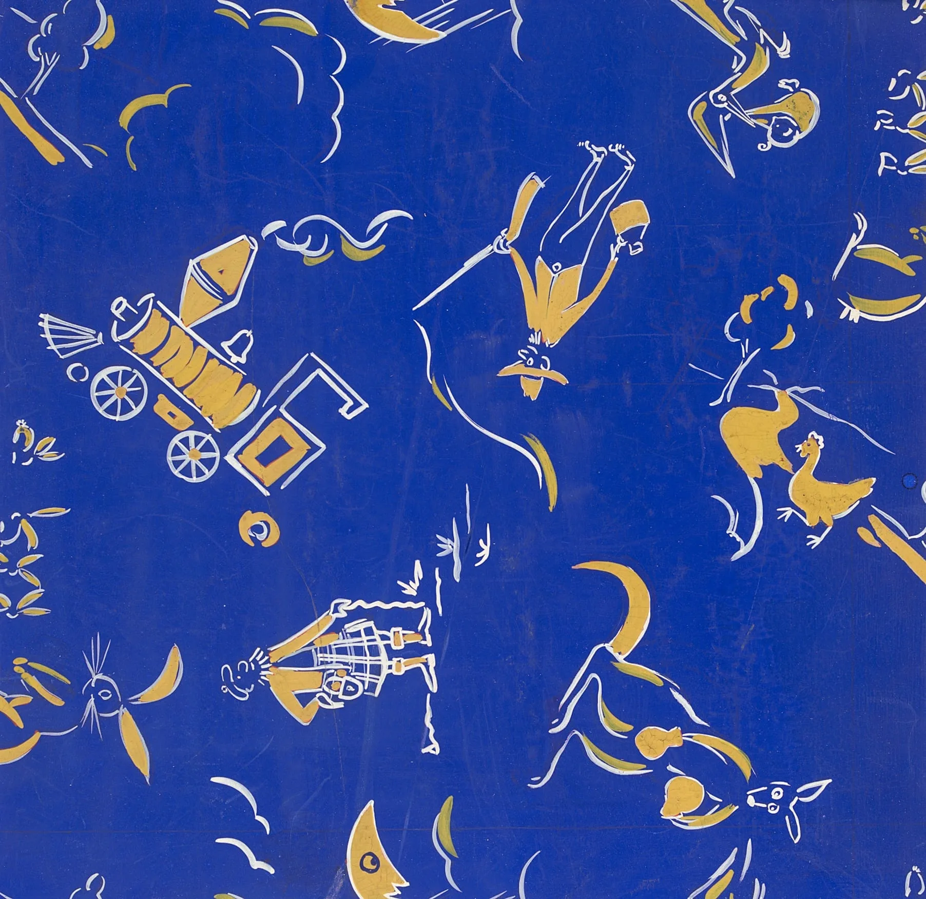 - Untitled Textile Design with Kangaroo, Train and Stork