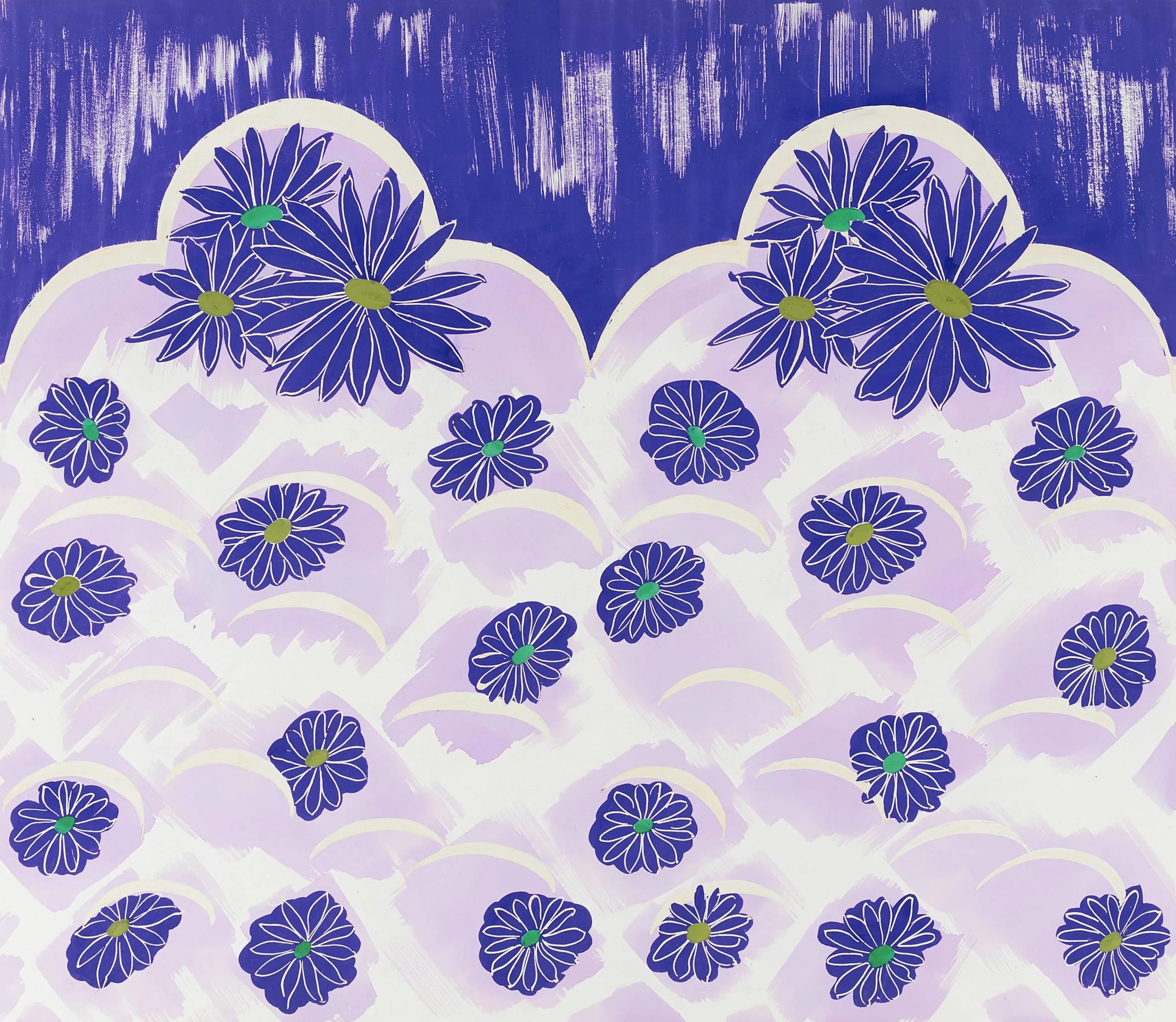 - Textile Design of Scalloped Border with Purple Flowers